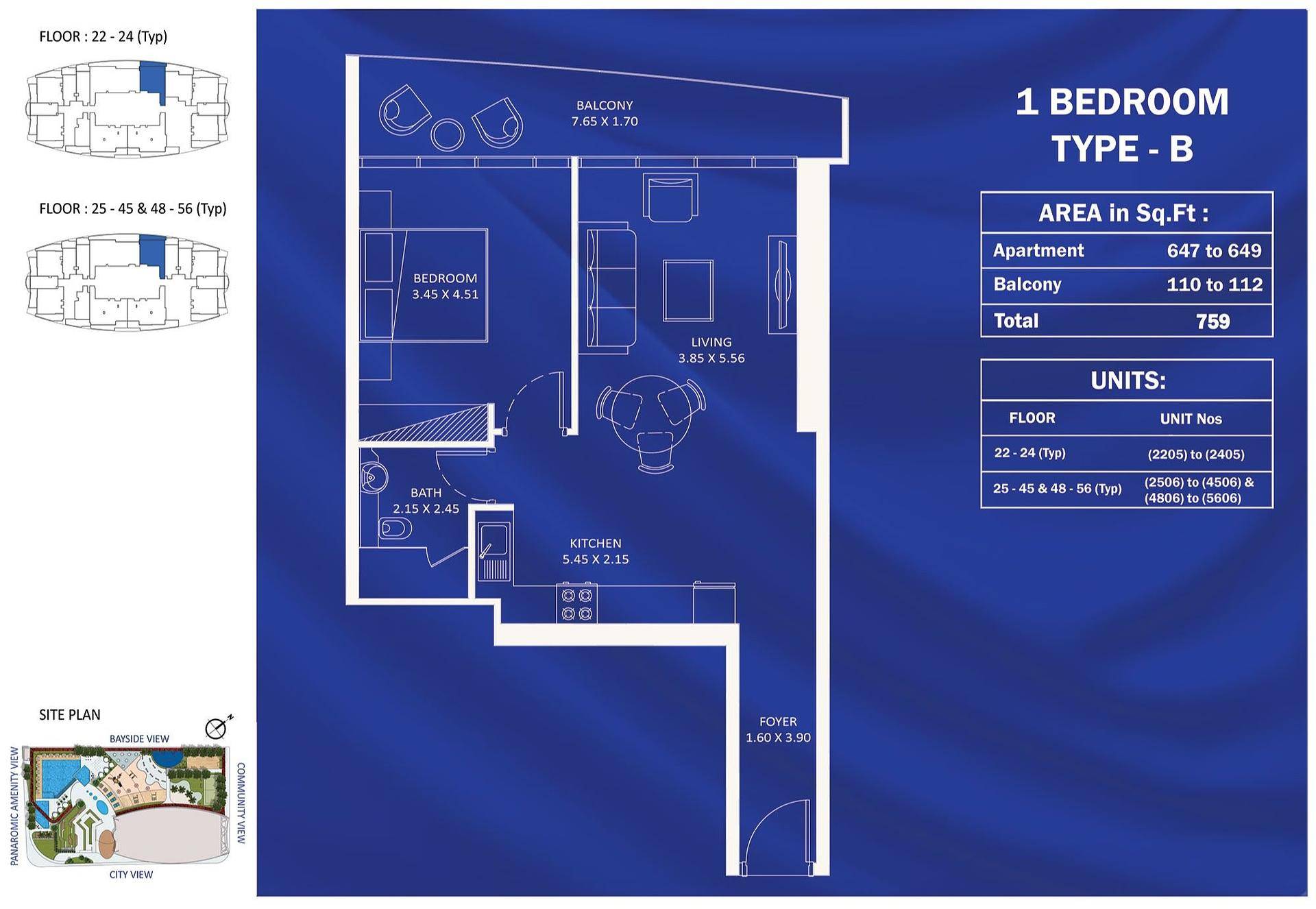 يتكون هذا المشروع المصمم بشكل مذهل من مبنى واحد يبلغ ارتفاعه المذهل اثنين وستين طابقًا. الشقق المعروضة من غرفة نوم واحدة واثنتين وثلاث غرف نوم. تحتوي الشقق المكونة من غرفة نوم واحدة وغرفتي نوم على حمامين وشرفتين ، بينما تحتوي الشقق المكونة من ثلاث غرف نوم على حمام إضافي. بالإضافة إلى ذلك ، يوفر مكان الإقامة أيضًا شقة استوديو مثالية للأفراد أو المسافرين. الديكورات الداخلية فخمة ، مع تبليط عالي الجودة سمة سائدة. يمكن للمقيمين الوصول إلى ما لا يقل عن ثلاثة أنواع من حمامات السباحة للسباحة فيها. بالنسبة لأولئك المتحمسين للرقص ، هناك استوديو للرقص ، ومع وجود سينما في الهواء الطلق ، لا توجد فرصة لتفويت أحدث الأفلام الرائجة.