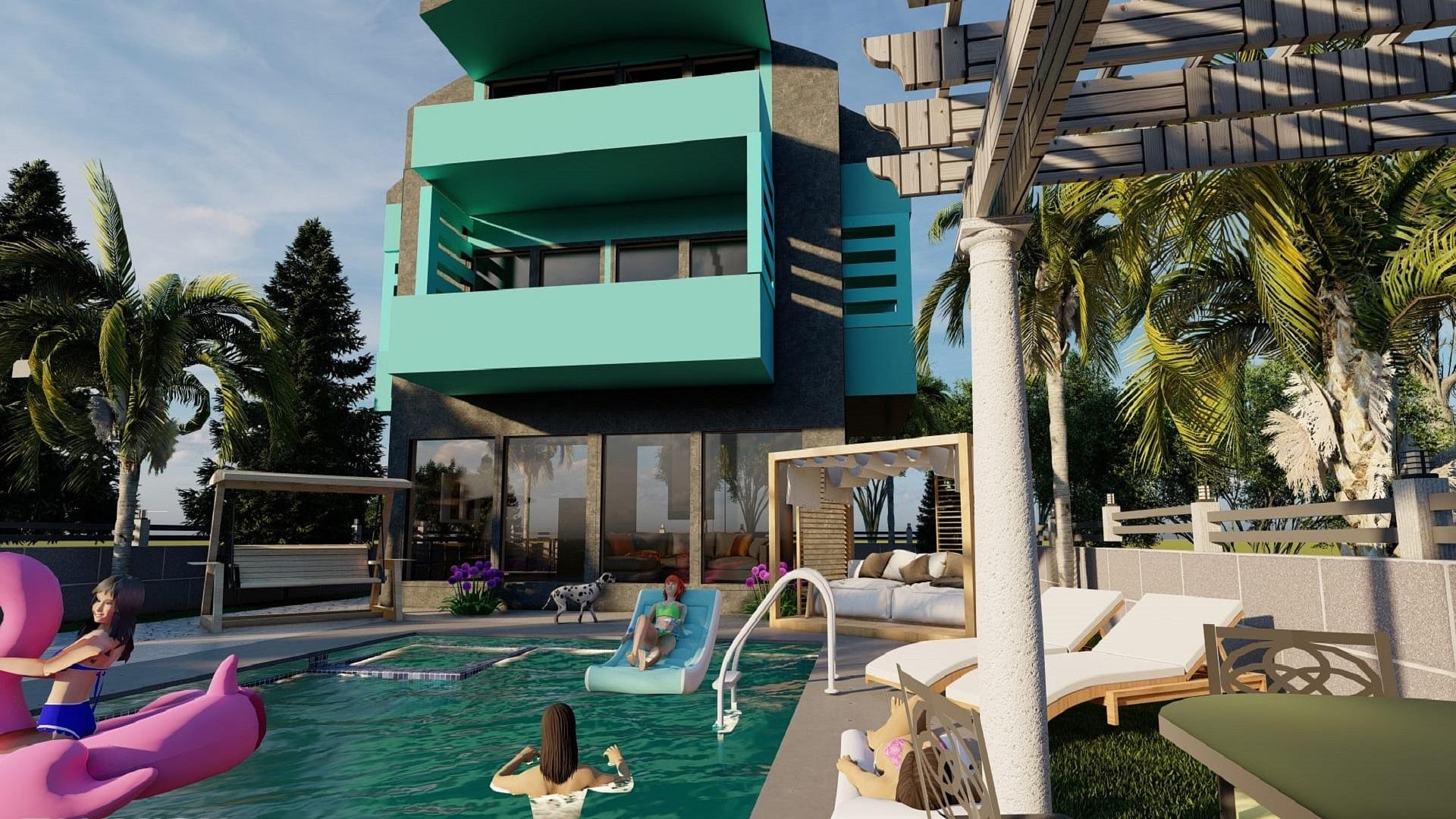 سوف تروق هذه الفيلا ذات التصميم المعماري المميز لمن يبحث عن منزل فريد من نوعه يبرز من بين الحشود ؛ من المؤكد أن هياكلها الهندسية الشبيهة بالمكعب تقدم بيان تصميم معاصر.