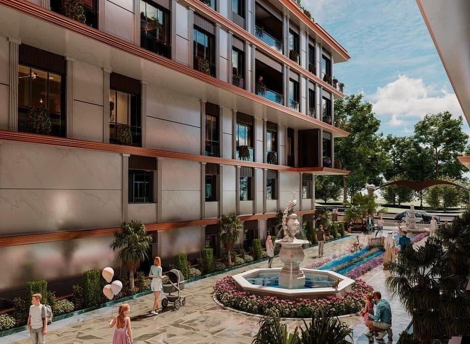 يتكون هذا المشروع المصمم بشكل جميل من مبنى مكون من ستة طوابق على شكل حرف "U" مع ممر مركزي محسّن بالنوافير وغيرها من الميزات المائية. مثالية للأفراد أو الأزواج أو أولئك الذين لديهم عائلات صغيرة ، حيث توجد ثلاثة أحجام وأنواع من الشقق. أصغر غرفة نوم بها حمام واحد وشرفة. شقة من غرفتي نوم وحمامين وشرفة واحدة. يوجد دوبلكس أكبر بغرفتي نوم به حمامين لكن يستفيد من شرفة ثانية. يتم تركيب أحدث تقنيات المنزل الذكي في جميع الشقق. تشمل المرافق الأمن ومرآب للسيارات. لا داعي للقلق من لا يملكون سياراتهم الخاصة لأن مكان الإقامة يقع في مكان مثالي بالقرب من محطة للحافلات. يمكن الحصول على الجنسية التركية وكذلك تصريح الإقامة عند الشراء.