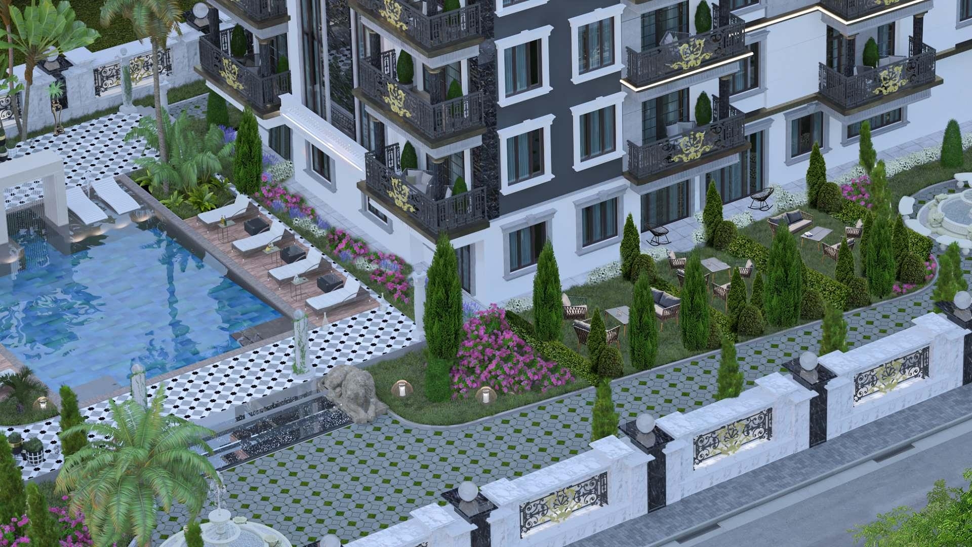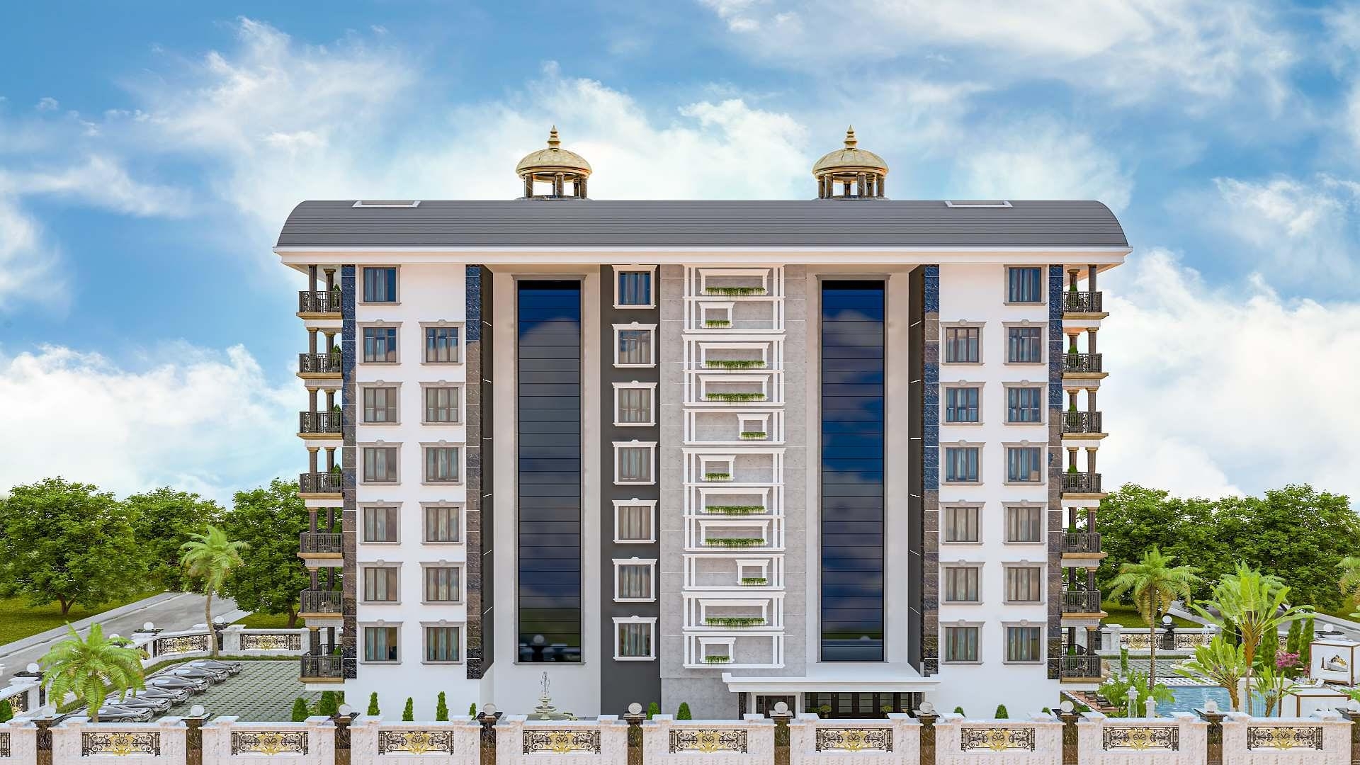Bu cazibədar mənzillər 2,166 kvadrat metr sahəyə yerləşir və yeddi mərtəbədə 48 gözəl mənzili əhatə edir. Estetik baxımdan cəlbedici bu binada seçmək üçün müxtəlif konfiqurasiyalar mövcuddur: tək və iki yataqlı mənzillər, loft və ya bağ mənzili variantları ilə. Hər bir mənzil, mükəmməl tətil məkanında zərif yay və ya daimi ev axtaranlara müraciət etmək üçün xüsusi dizayn edilmişdir. Avsallar, müasir tətil kurortu ilə təbii kənd həyatı, meşələr və meyvə ağaclarının maraqlı qarışığıdır. Bu kompleks, hazırda inkişaf etdirilən və geniş açıq sahələri qoruyan bir ərazidə yerləşir. Açıq planlı yaşayış məkanda, müasir mətbəxlər, yüksək keyfiyyətli mebel dolabları və həm şık, həm də funksional lüks vanna otaqları yer alır. Qızıl detalların vurğulandığı dəbilqə dəmir dayaqlar, balkonları əhatə edir və memarlığa zərif, kraliyyət havası verir. Ümumi istifadə olunan xidmətlər çox cazibədardır və otel tərzində dizayn edilmişdir (aşağıdakı siyahıya baxın). Gözəl sonsuz hovuz ətrafında rahatlanaraq özünüzü təsəvvür edin; uşaqlarınız xüsusi oyun meydançasında xoşbəxtliklə oynayır. Həyat bundan daha yaxşı ola bilməz!