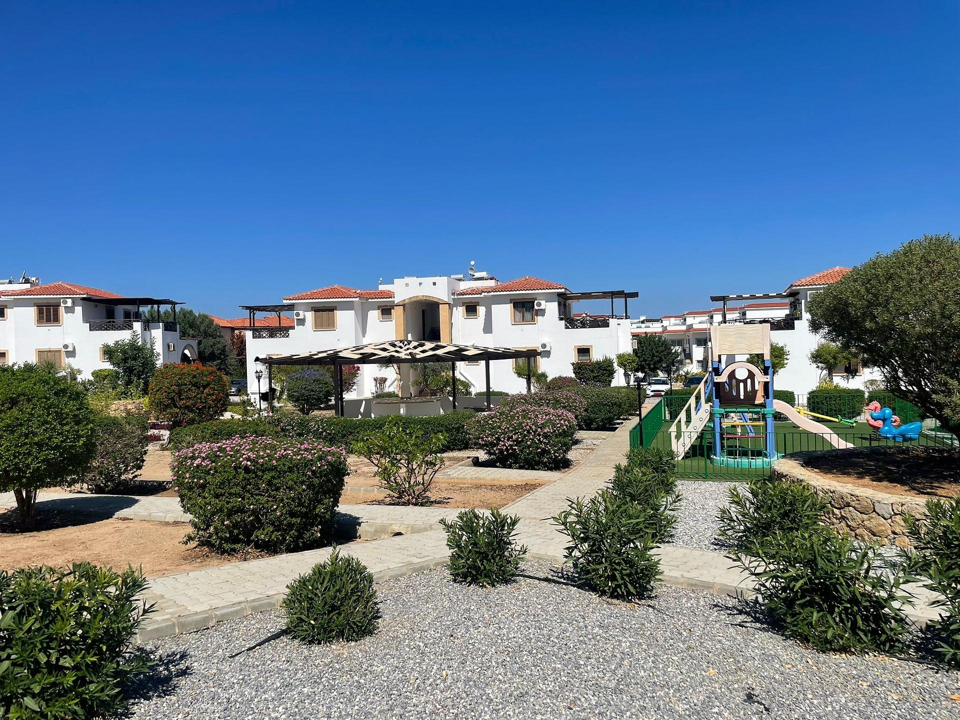 Məşhur Korineum Qolf Klubuna və dünya şöhrətli Turtle Beach'ə yaxın yerləşən bu mənzil, uzunmüddətli icarəyə götürmə və yenidən satış üçün əla potensial təqdim edir. Kompleks həmçinin spa kompleksi və suv parkı ilə tanınan lüks Elexus Hotel'ə yaxındır.