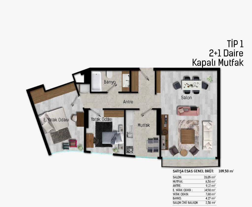 Sastoji se od jednog bloka od četrnaest spratova, ovaj projekat svojim stanarima nudi dvosobne i trosobne stanove. Moderan i moderan dizajn se može vidjeti u obje veličine stanova, a izbor materijala se sastoji uglavnom od drveta i pločica. Dvosobni apartmani imaju jedno kupatilo i jedan balkon, dok trosobni apartmani imaju po dva. Privatno kupatilo kao i sistem pametne kuće su značajne karakteristike ovih domova. Nakon kupovine novog doma iz snova, stanovnici mogu dobiti i tursko državljanstvo i boravišnu dozvolu ako je potrebno.