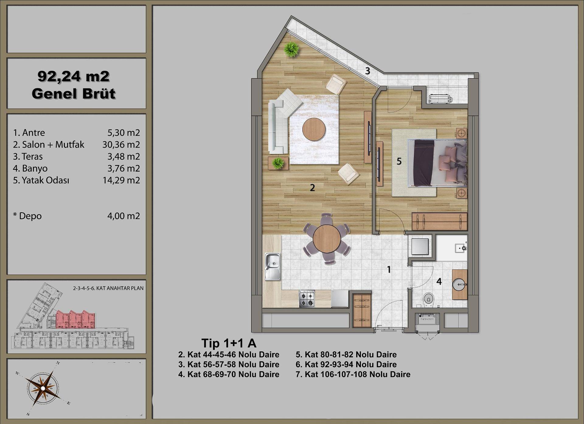 Projektets samlede byggeareal er 27.555 m2. Det har 15 erhvervsenheder og en enkelt boligblok med 100 lejligheder i forskellige størrelser, herunder 1+1, 1+1 duplex, 2+1 og 2+1 duplex lejligheder. Lejlighederne har massive "performance" vinduer på alle sider og haveterrasser med udsigt over skoven og Bosporus. Der er afsat 600 m2 plads til sociale faciliteter. En væsentlig del af projektet er beliggende i en position, der dominerer den uafbrudte skovudsigt. Med en stor grøn skov bag ejendommen kan beboerne opleve enestående komfort med sin indendørs swimmingpool, fitnesscenter og spa-center, alt sammen uden at forlade naturen eller hjertet af byen. Komplekset blev bygget ved hjælp af unikt, innovativt og moderne arkitektonisk design.