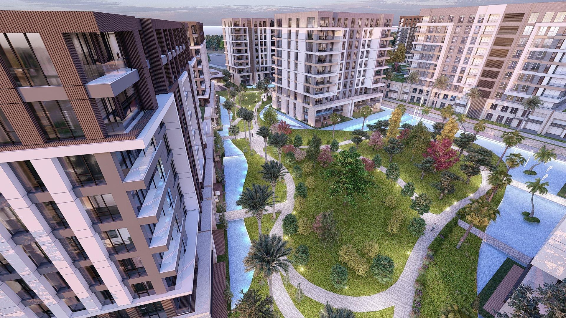 Die Wohnanlage ist auf 20.300 m2 bebaut und besteht aus 7 Blöcken mit 300 Einheiten in 3+1, 4+1 und 5+1 Grundrissen. Das Projekt zeichnet sich durch eine einzigartige Wohnungsaufteilung aus, die die offene Aussicht von allen Seiten voll ausnutzt. Die Apartments sind mit eleganten Innen- und Außenoberflächen sowie hochwertigen Materialien ausgestattet.