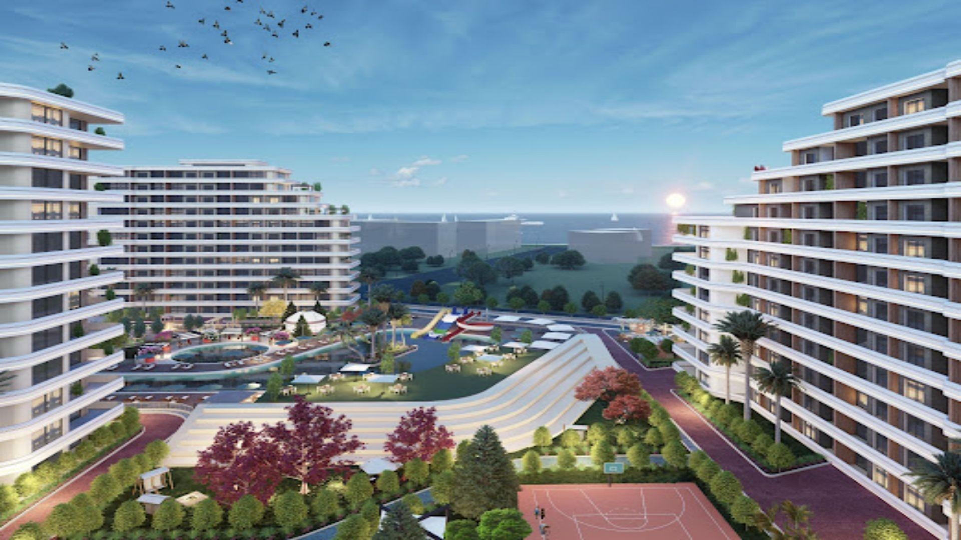 Dies ist ein Komplex von beträchtlicher Größe mit fünf zwölfstöckigen Blöcken, die Apartments in verschiedenen Größen bieten. Das Apartment mit einem Schlafzimmer verfügt über ein Badezimmer und einen Balkon. Die Apartments mit zwei und drei Schlafzimmern verfügen über zwei Badezimmer und zwei Balkone. Die Deluxe-Interieurs harmonieren perfekt mit Komfort und Design mit hochwertigem Holz und Fliesen. Zu den Einrichtungen gehören ein Kino und ein Hausmeister.