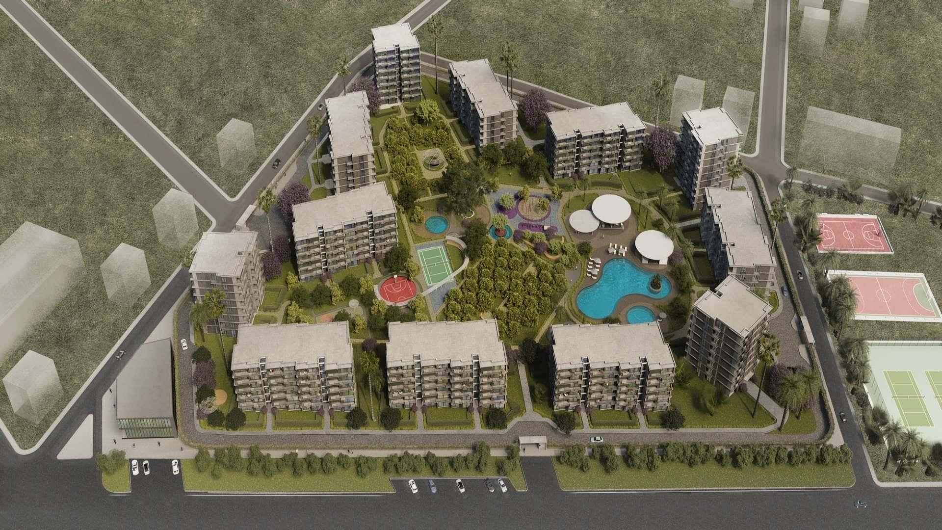 Das neue Projekt beabsichtigt, einen außergewöhnlichen Wohnbereich zu schaffen, der aus 12 Blöcken besteht und sich harmonisch in die Umgebung eines 43.000 m2 großen Zitrushains einfügt. Es gibt insgesamt 248 Wohnungen in den Grundrissen 2+1 und 3+1. Das Projekt umfasst 25.000 m2 Grünfläche, ein Freibad, einen Basketballplatz, einen Tennisplatz, einen Minigolfplatz, kleine Zierteiche, einen Haustierpark, ein Open-Air-Kino, ein Fitnesscenter, ein Café und einen Kinderpark , Innen- und Außenparkplätze, 24/7-Sicherheit und ein Kamerasystem.