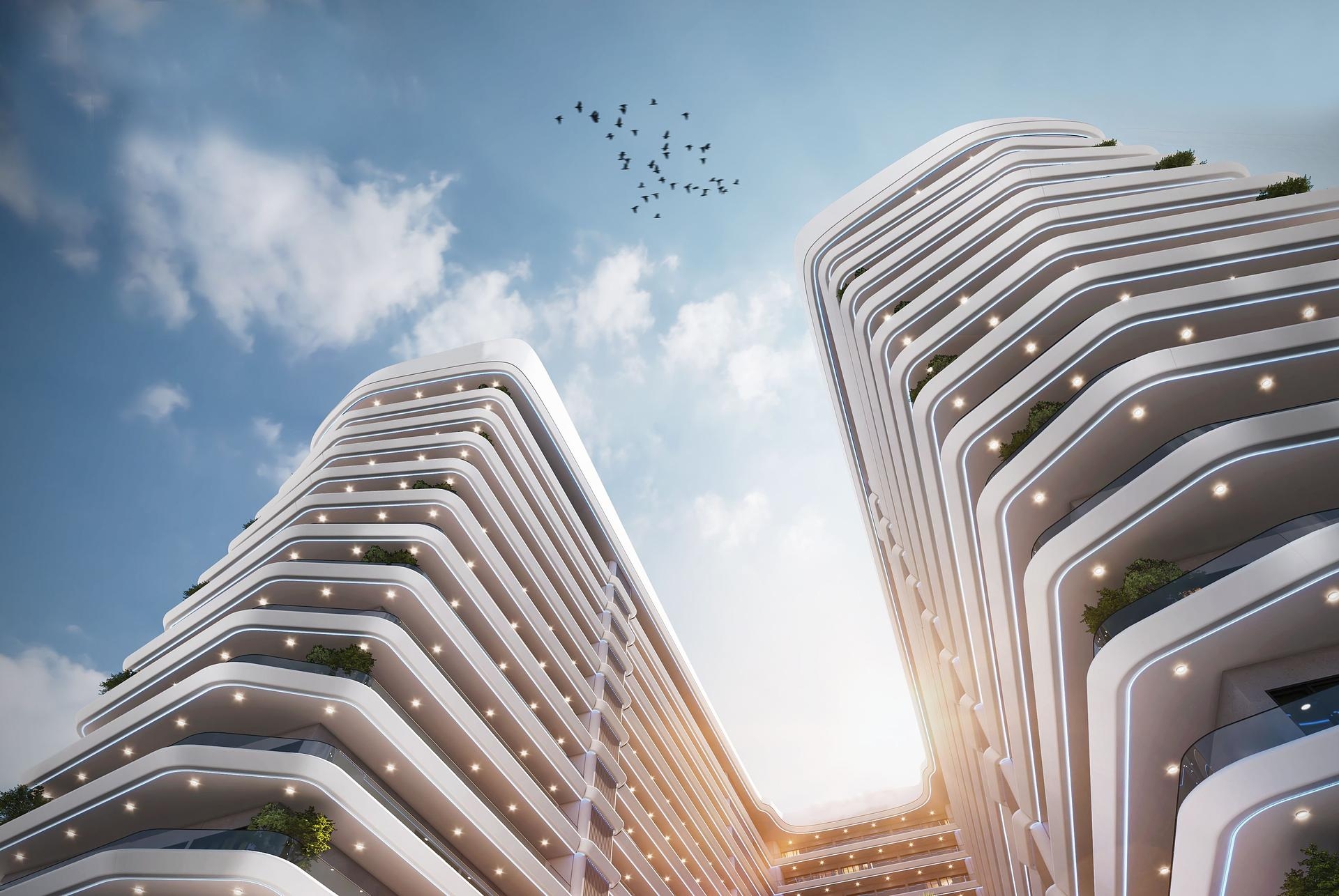- Anmutig geschwungenes Turmdesign : Verfügt über eine Reihe abgeschiedener Balkone mit atemberaubender Panoramaaussicht.