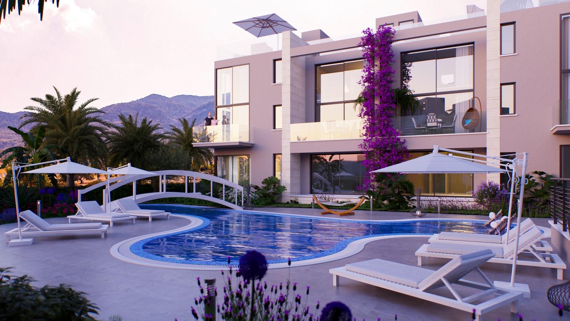 Willkommen in Tatlisu, einem charmanten Viertel im Herzen von Famagusta, Nordzypern. Tatlisu ist für seine atemberaubende Naturschönheit und sein reiches kulturelles Erbe bekannt und bietet eine ruhige und idyllische Umgebung für diejenigen, die eine friedliche Flucht aus dem hektischen Stadtleben suchen. Dieses neue Objekt liegt nur 30 km vom Stadtzentrum entfernt und bietet eine unglaubliche Gelegenheit, ein Stück Paradies zu besitzen. Nur 200 m vom nächsten Strand entfernt können die Bewohner dem beruhigenden Rauschen der Wellen lauschen und sich in der warmen mediterranen Sonne sonnen. Für diejenigen, die gerne reisen, ist der nächste Flughafen nur 49 km entfernt und bietet so bequemen Zugang zu nationalen und internationalen Zielen. Bequemlichkeit ist von entscheidender Bedeutung, und dieses Projekt erfüllt alle Kriterien. Da der Markt weniger als 3 km entfernt ist, können die Bewohner ihre täglichen Bedürfnisse schnell und problemlos decken. Das Projekt verfügt über eine Reihe von Annehmlichkeiten, die die Lebensqualität verbessern sollen. Die zum Verkauf stehenden Stadthäuser verteilen sich auf zwei Etagen und bieten verschiedene Optionen, darunter Grundrisse mit einem oder zwei Schlafzimmern. Betreten Sie mit den beeindruckenden Einrichtungen des Projekts eine Welt voller Luxus und Entspannung. Nehmen Sie ein erfrischendes Bad im glitzernden Pool oder genießen Sie ein erfrischendes Bad im Innenpool, der das ganze Jahr über ein Vergnügen ist. Der offene Parkplatz bietet ausreichend Platz für Bewohner und Gäste, während der üppige Garten eine ruhige Oase zum Entspannen und Wiedereintauchen in die Natur bietet. Das Fitnessstudio ist mit modernsten Geräten für diejenigen ausgestattet, die einen aktiven Lebensstil suchen, sodass die Bewohner fit und gesund bleiben können. Gönnen Sie sich ultimative Entspannung im Spa und regenerieren Sie Ihre Sinne im wohltuenden Whirlpool. Das Projekt umfasst auch einen Spielplatz für Kinder, der für endlosen Spaß und Gelächter sorgt. Wenn Sie sich entspannen möchten, besuchen Sie die Poolbar oder das Restaurant und genießen Sie köstliche Mahlzeiten und erfrischende Getränke. Ganz gleich, ob Sie einen dauerhaften Wohnsitz oder ein Ferienhaus suchen, dieses Projekt bietet die perfekte Mischung aus Komfort, Bequemlichkeit und Luxus. Nutzen Sie diese unglaubliche Gelegenheit, ein Stück Paradies in Tatlisu, Famagusta, Nordzypern zu besitzen.