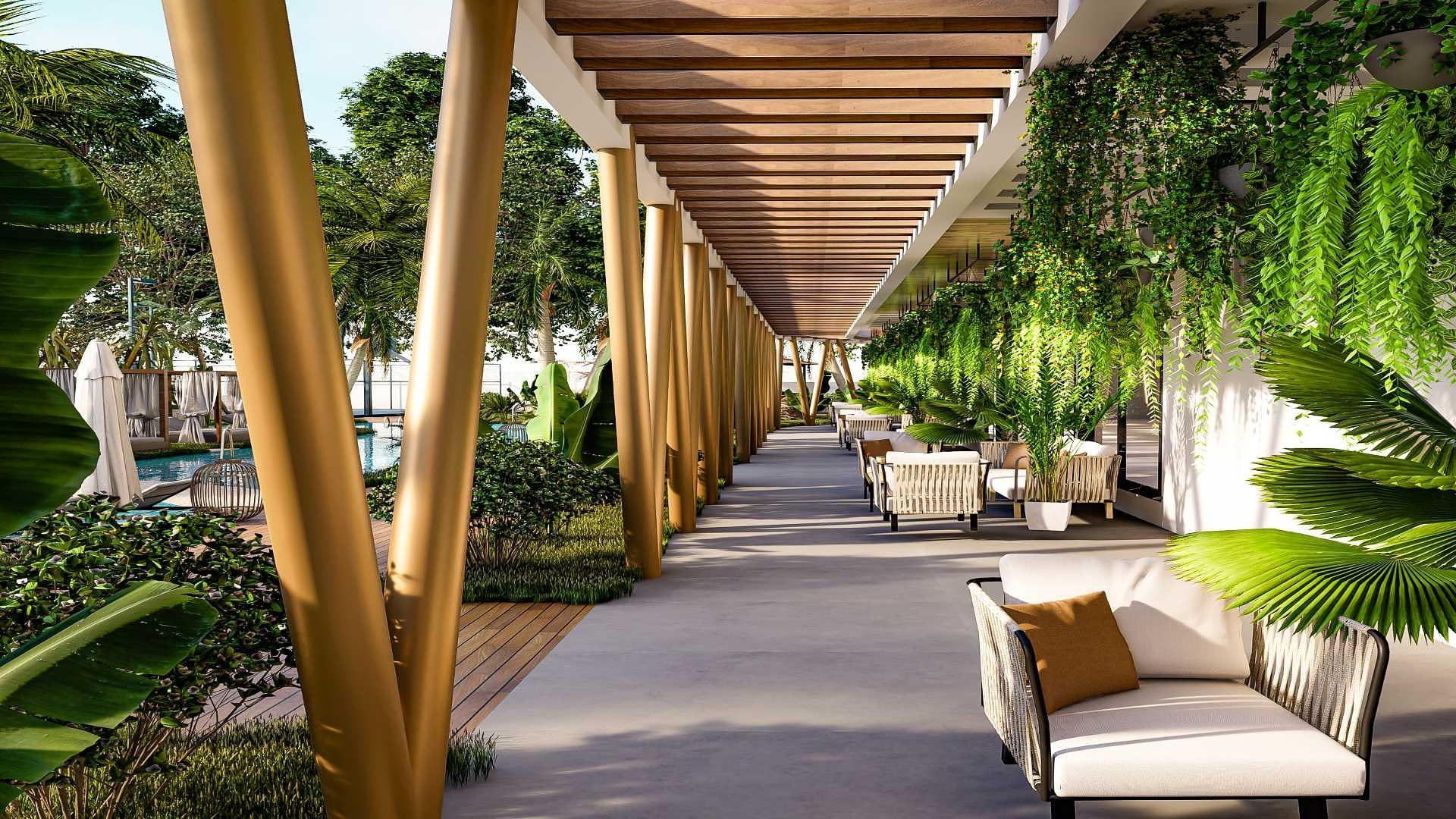 Die Fassade dieses Wohnblocks verleiht ihm eine zeitgemäße und moderne Atmosphäre. Es ist ein Hochhausblock, der auf einem 3.250 Quadratmeter großen Grundstück steht. Es gibt eine Reihe von Apartments mit einem oder zwei Schlafzimmern; einige sind Duplexe.