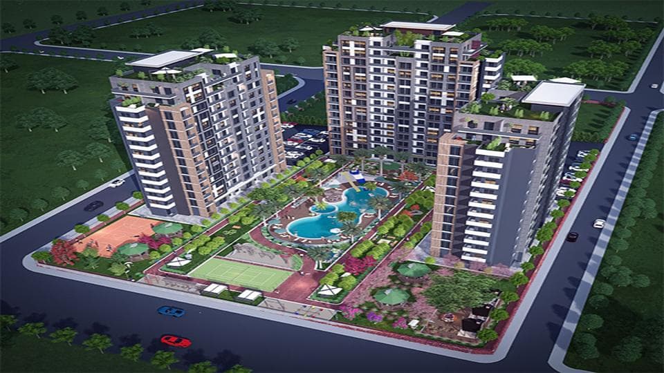 Das Anwesen besteht aus drei vierzehnstöckigen Wohnungen, die drei Seiten des rechteckigen Komplexes einnehmen. Auf der vierten Seite, die dem Meer zugewandt ist, befindet sich kein Gebäude. Die Apartments sind Einzimmerwohnungen mit einem Badezimmer und einem Balkon und Zweizimmerwohnungen mit zwei Badezimmern und zwei Balkonen. Das Designkonzept ist ein eleganter Minimalismus mit einem kombinierten Wohnzimmer und einer Küche, die den verfügbaren Platz maximieren. Zu den Einrichtungen gehören ein Fitnessstudio und ein offener Parkplatz.