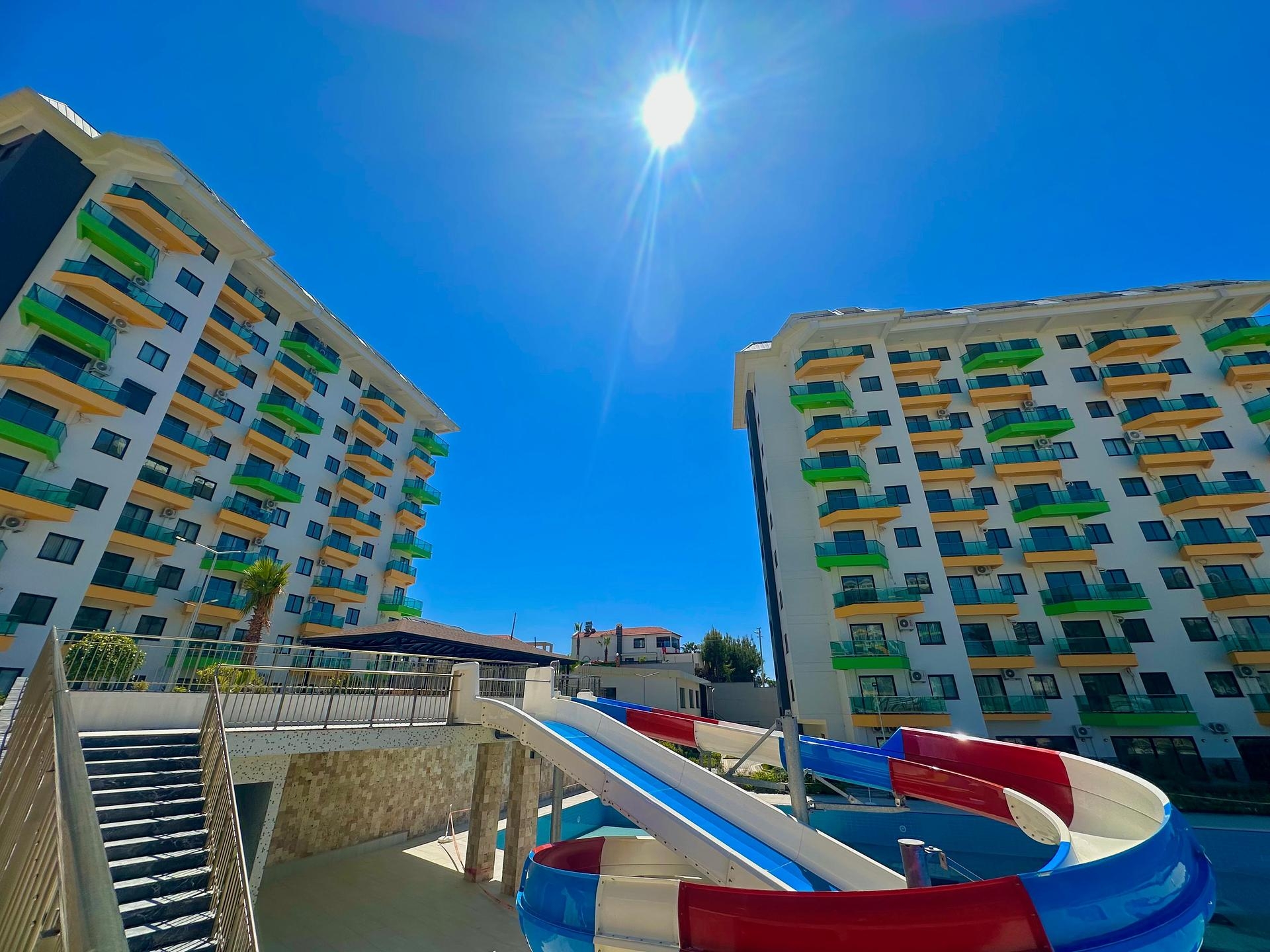 Basketball Table Tennis Poolside bar Security Waterslide Cable tv-satellite Elevator Pool Indoor pool Outdoor Parking Gym Lobby Market Ready in Alanya Furniture Game Room Tennis Turkish bath Salt room Kids Play Area Playground