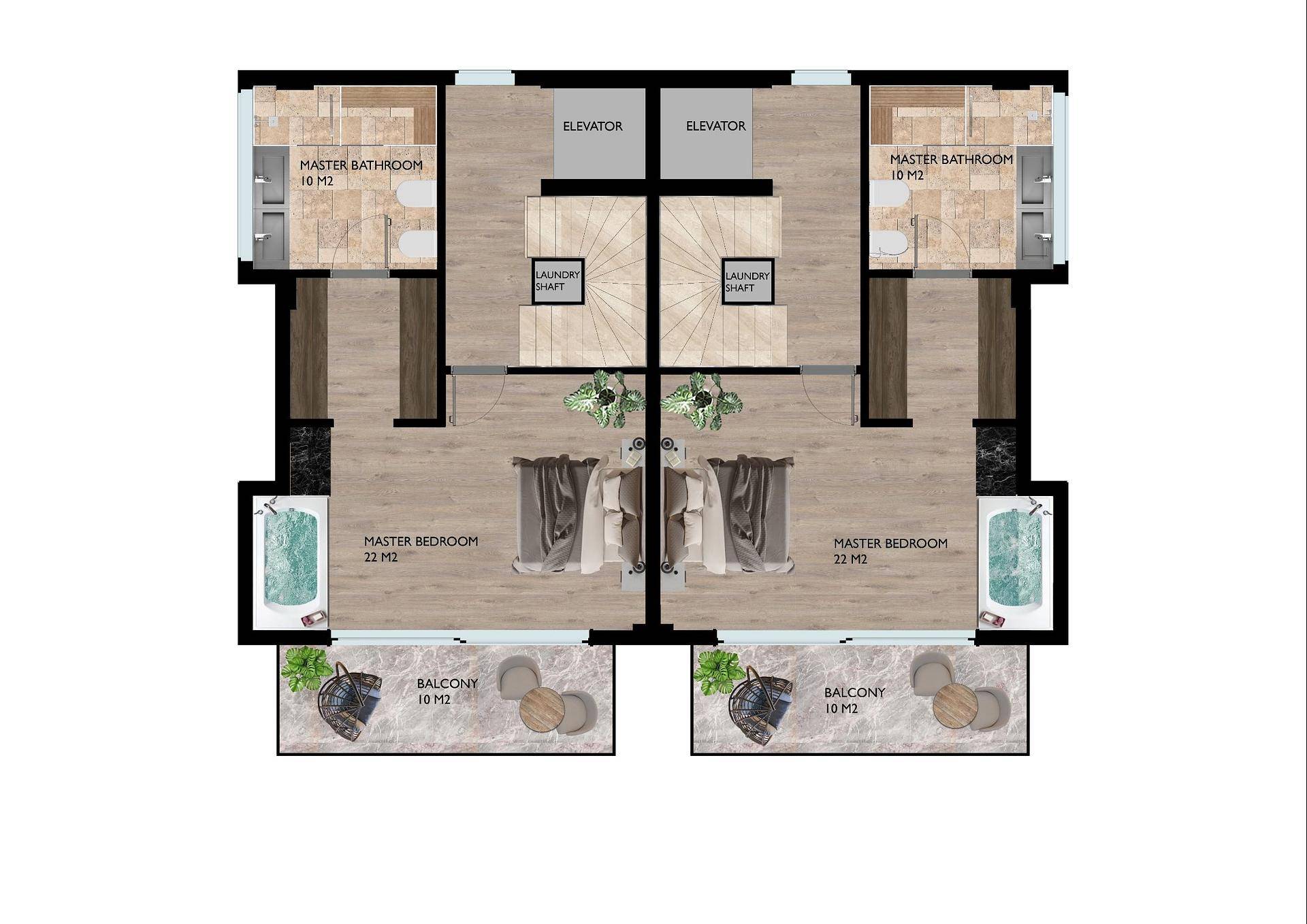 These gorgeous residential villas are divided into two. The top building will consist 2, three-bedroom semi-detached villas, while on the bottom, house a private four-bedroom luxurious villa.