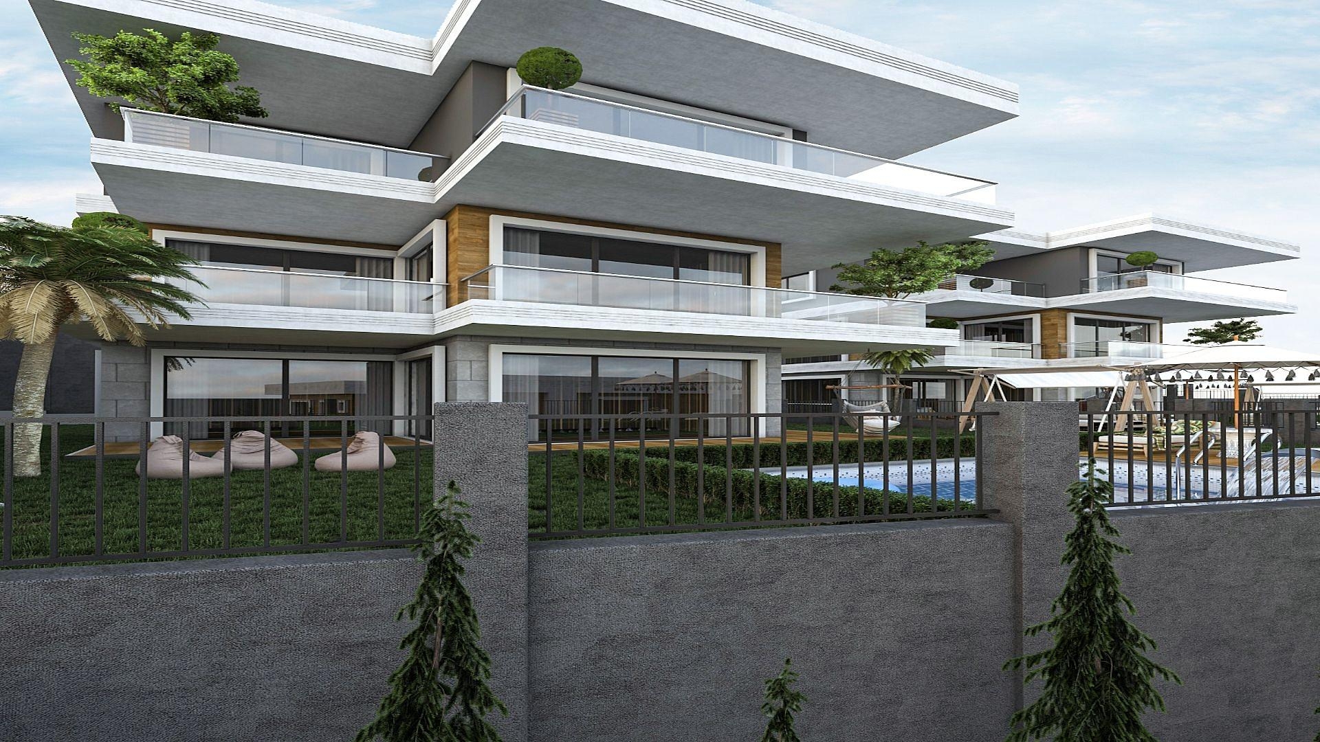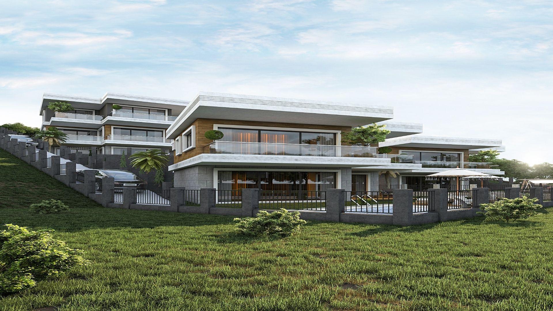 The villa complex consists of 4 blocks with 3+1 duplex and 6+1 triplex villas. 6+1 villas feature 6 bedrooms, 6 bathrooms, living room with kitchen, private landscaped garden, swimming pool, private parking space and security.