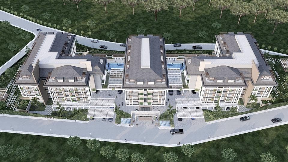The complex consists of three 4-story buildings with 128 units: 1+1, 2+1 flats, 2+1 and 3+1 duplex apartments, and garden duplexes. The complex's infrastructure includes an outdoor pool with a sunbathing area, an indoor heated pool, a fitness center, a sauna, a lobby, a generator, and video surveillance.