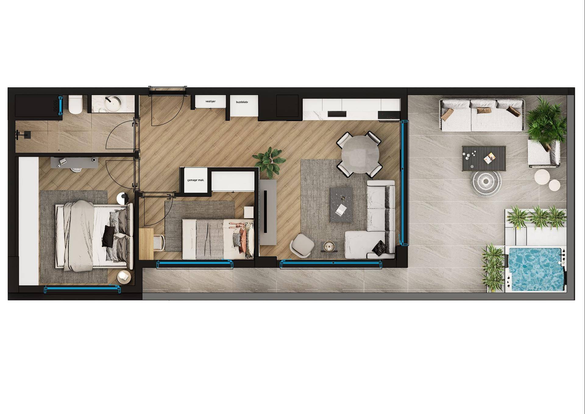 Welcome to the vibrant district of Aksu in Antalya, Turkey! Known for its rich history, stunning landscapes, and warm hospitality, Aksu perfectly blends modern amenities and traditional charm. This bustling district is a melting pot of culture, with easy access to the city center, beautiful beaches, and convenient transportation links. Whether you're a nature enthusiast, a history buff, or a beach lover, Aksu has something for everyone. Introducing our latest project located just 4.5km from the city center, offering a range of luxurious apartments to suit your lifestyle. With proximity to the nearest beach at 3.5km, airport at 6km, and market less than 7km away, convenience is at your doorstep. This 7-floor development features a variety of 1, 2, and 3-bedroom apartments, each equipped with top-notch amenities, including private pools, indoor pools, smart home technology, spa facilities, playgrounds, and much more. The project is built on a spacious 5826m² plot, providing ample room for comfortable living. It comprises a single block with 95 apartments, offering three distinct types of apartment options to cater to various preferences and needs. Enjoy the refreshing outdoor pool spanning an impressive 1100m², perfect for leisurely swims and relaxation under the sun. Additionally, indulge in the tranquility of the indoor pool, boasting a cozy atmosphere spanning around 30m². For added convenience and luxury, each apartment comes complete with Bosch white goods included in the price, ensuring high-quality appliances for your everyday needs. However, we recommend consulting with one of our knowledgeable agents for the most accurate and up-to-date information regarding the project. Experience comfort, convenience, and sophistication at our project in Aksu. Don't miss this opportunity to own a piece of paradise in this enchanting district.