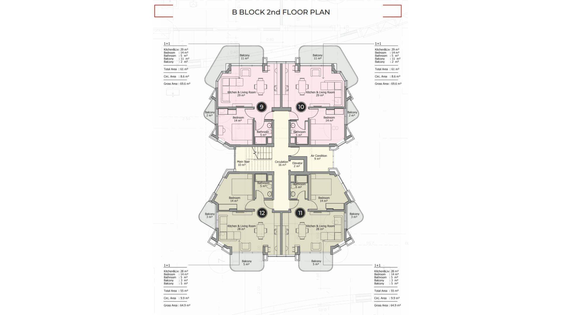 This apartment project comprises two five-floored blocks, and given its ideal location close to the beach, the views are understandably stunning. There is an outdoor pool with ample sunbathing area for days when residents wish to stay close to home. The one bedroomed apartment has one bedroom and one balcony. The two-bedroomed apartment is a duplex and has two bathrooms and two balconies. The high-quality materials used enhance the modern and chic design of the interiors. Facilities include open car parking.