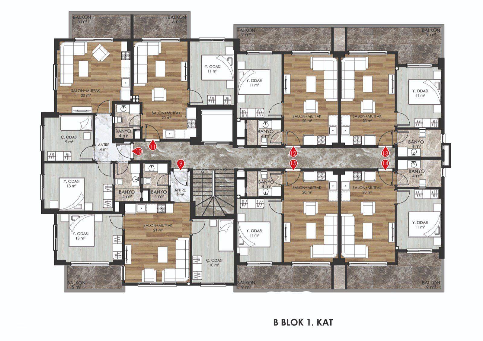 The project is small, with only one block and 28 units. There are apartments in different sizes and layouts: 1 and 2-bedroom apartments and 2, 3, and 4-bedroom duplex apartments. All stylish apartments in our project, which is expected to begin in October 2022, feature spectacular sea views. The apartments on the west side provide an idea of the old Alanya Castle, shipyard, and harbor. The flats on the east side enjoy a spectacular sea view as well. The concept is more appealing since several apartments and shared areas are available to meet each individual's demands and budget.