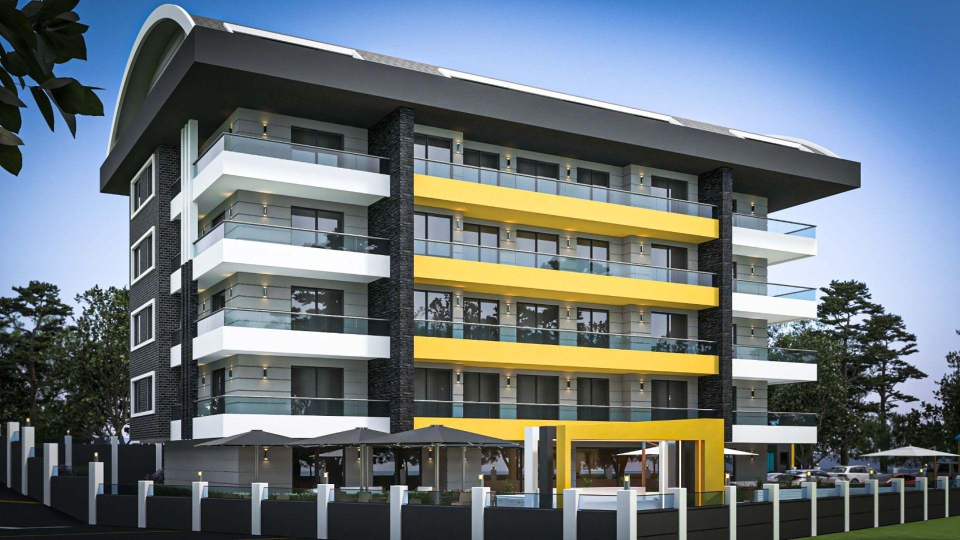 This stylish apartment block will be built on 1,822m² of land, consisting of 12 apartments (three on every floor) ranging from stunning 3+1s to huge roof duplex 4+1s. Each apartment will be completed using excellent quality materials throughout. The kitchens will be chic and modern, whilst the bathrooms are opulent and contemporary in design. Large balconies flood the rooms with light making them bright and airy. As an added bonus, the designers have included sound insulation between each flat ensuring total privacy and quiet. The outside area is lovely with a gorgeous swimming pool (80m²) surrounded by landscaped gardens planted with lush Mediterranean plants, a large terrace perfect for sunbathing and a covered area suitable for intimate dinners for two or for entertaining family and friends.
