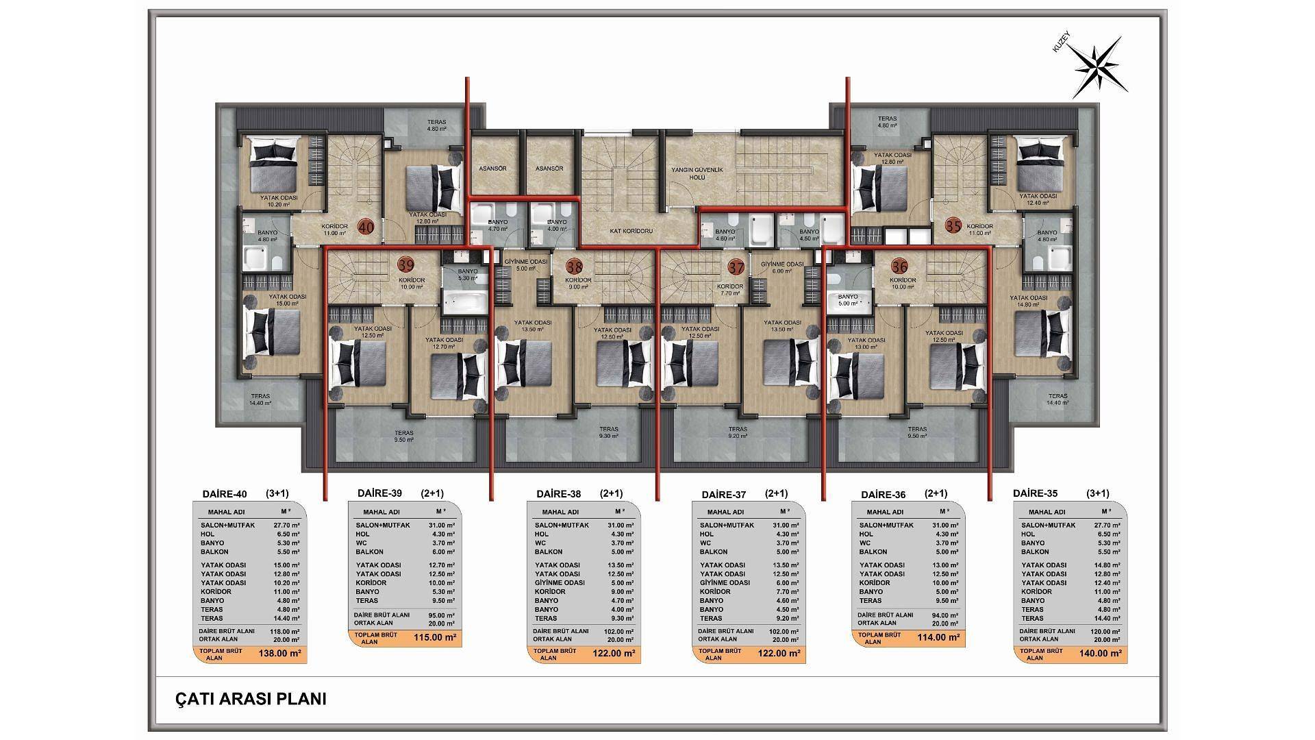 Kompleksia kehitetään 1.740.60 m2 tontille ja se koostuu yhdestä 7-kerroksisesta 40 asunnon korttelista. Saatavilla on erilaisia asuntoratkaisuja: 1 makuuhuoneen huoneistoja (56 m2, 57 m2), 2 makuuhuoneen huoneistoja (82 m2, 92 m2), 2 makuuhuoneen paritalohuoneistoja (114 m2, 115 m2, 122 m2) ja 3- makuuhuoneen duplexit (138 m2, 140 m2). Kompleksissa on ulkouima-allas, lasten uima-allas, leikkipaikka, katu shakki, BBQ-alue, alkovi, minigolf, pysäköinti, sähkögeneraattori, poreallas, kuntosali, sauna, lepoalue, aula, biljardi ja lasten leikkihuone.