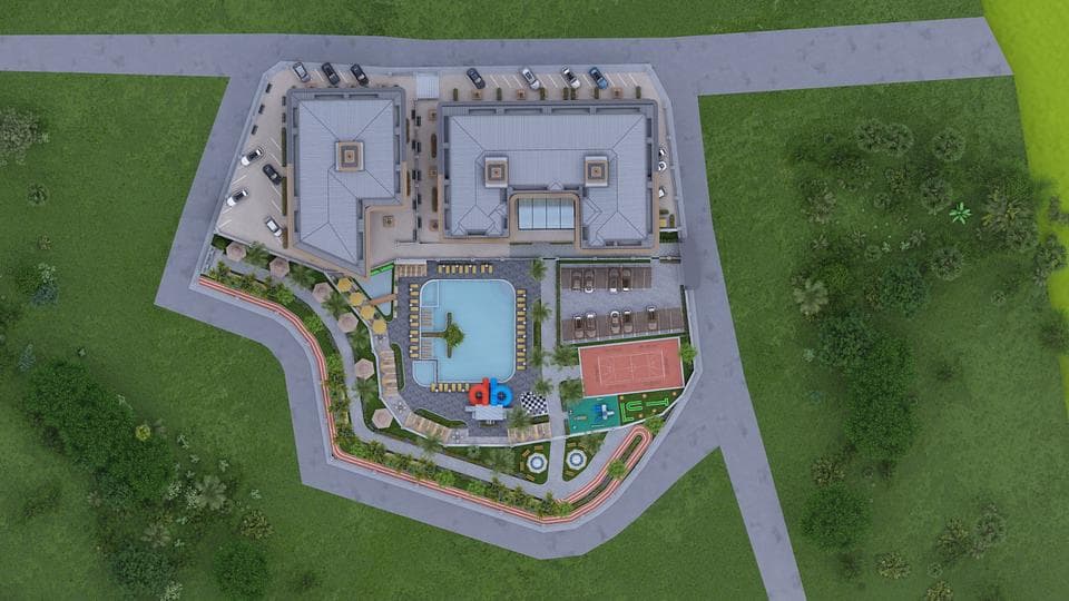 Ulkopuoliset yhteiset tilat ovat upeita. Kuvittele, että istuisit suuren uima-altaasi ympärillä ja otat aurinkoa; lapsesi leikkivät liukumäillä tai erillisellä leikkialueella. Lenkkeilyn jälkeen juoksuradan ympäri päätät laittaa grillin päälle ja juhlia perheen ja ystävien kanssa.