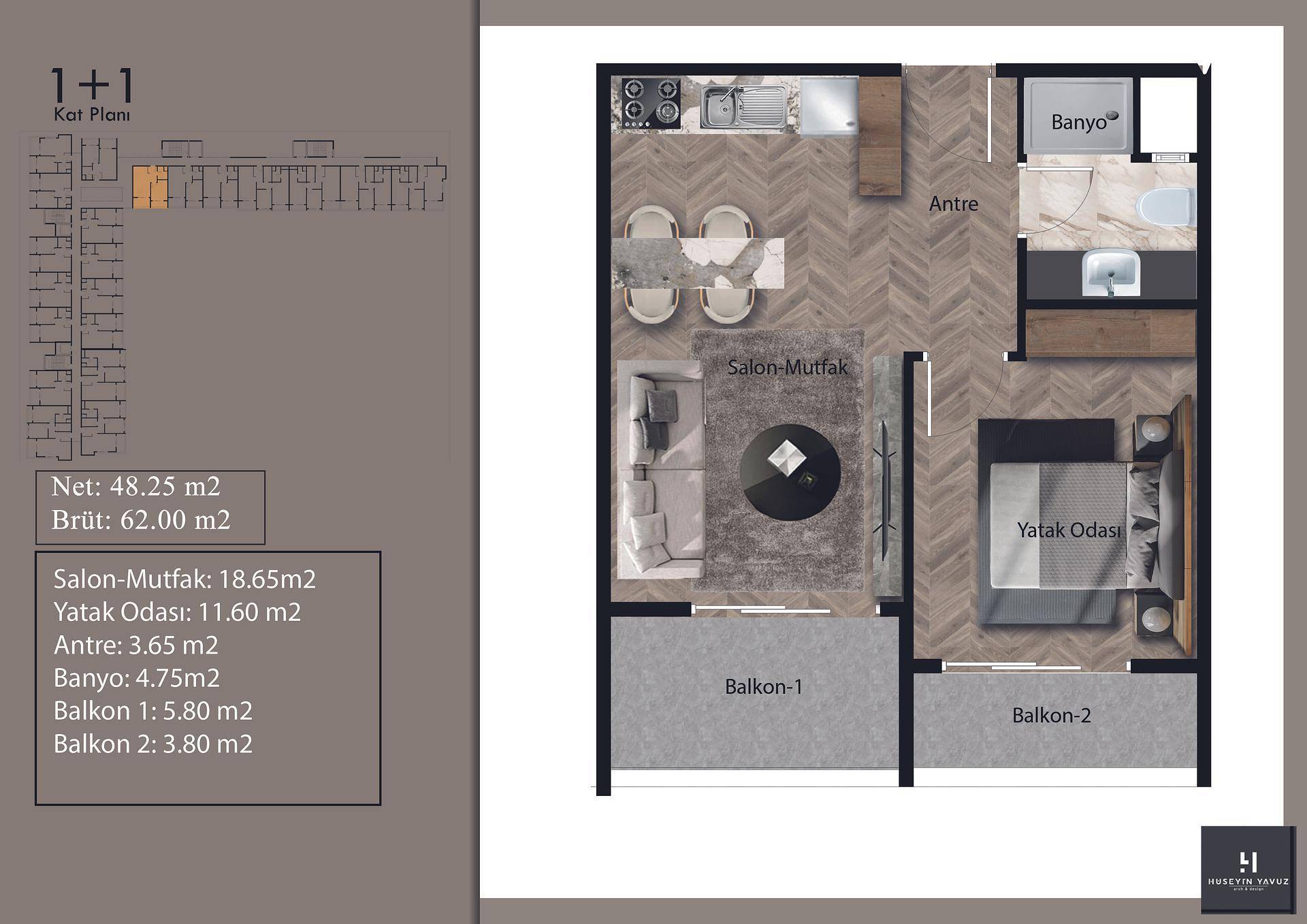 Kompleksi on rakennettu 4.926 m2 maa-alalle ja koostuu kahdesta 14-kerroksisesta asuintalosta, joissa on 1+1 asuntoa kooltaan 62 m2 ja 2+1 asuntoa 89 m2. Kompleksi tarjoaa erilaisia sosiaalisia mukavuuksia ja ominaisuuksia, kuten ulkopysäköintialueen, uima-altaan, lasten leikkipaikan, turkkilaisen saunan, grillialueen, maisemoidun alueen, jossa on laaja puutarha täynnä erilaisia kukkia, maakaasujärjestelmä, älykäs hissijärjestelmä, generaattori, katu- ja sisävalaistus, aula, koodijärjestelmä ulko-ovissa, 24/7 vartiointi ja videovalvontajärjestelmä.
