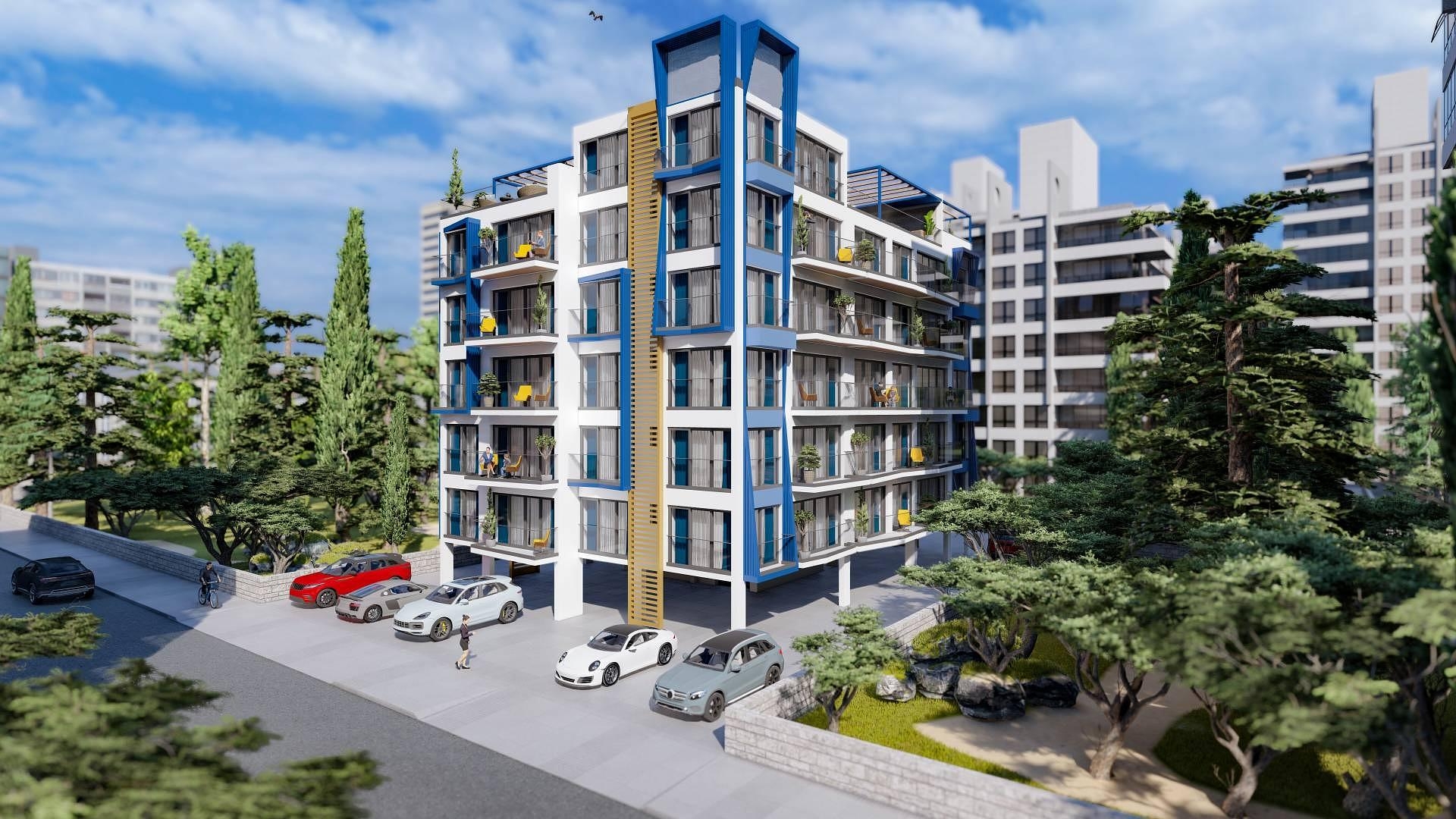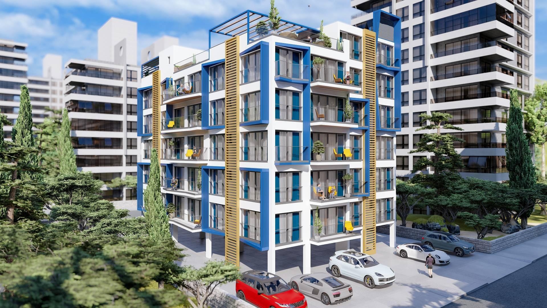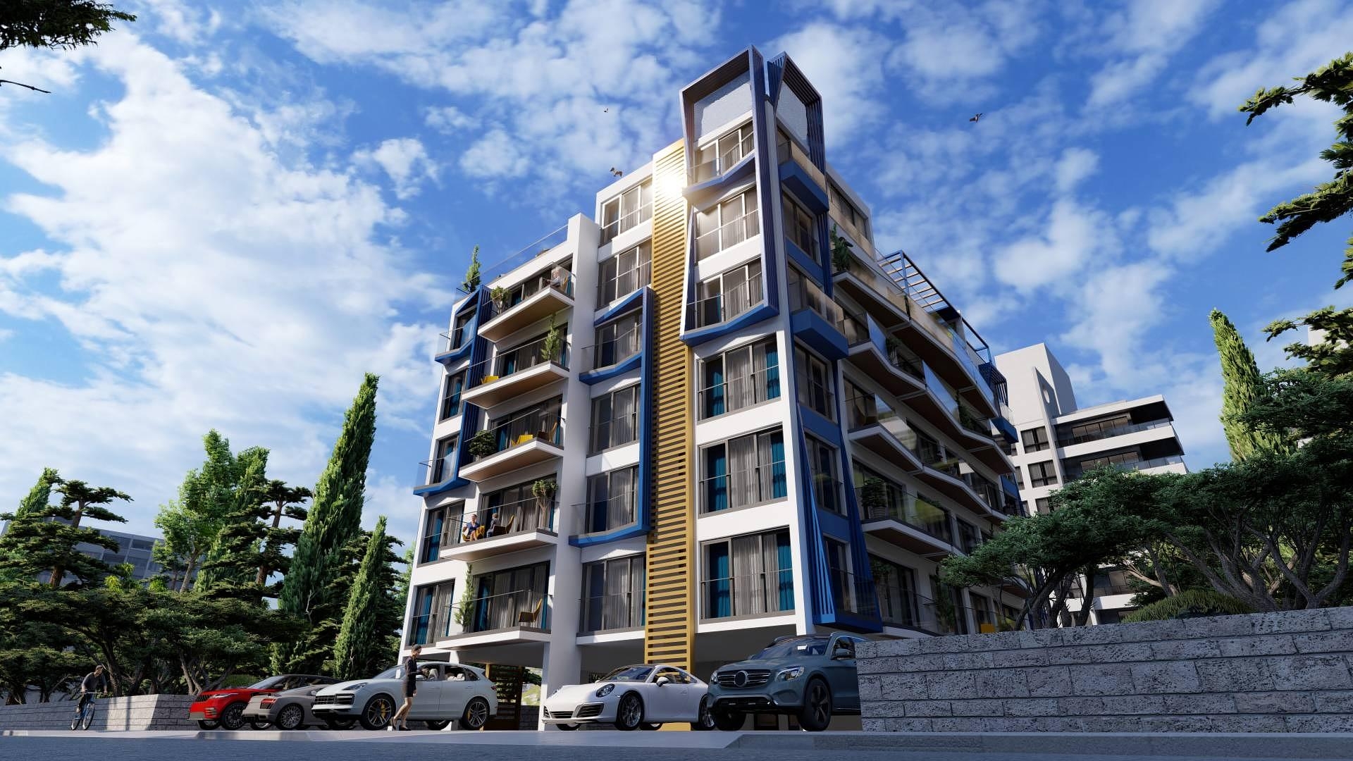 Ces appartements dans le quartier de Yeni Iskele sont tous situés dans un bâtiment d'un seul bloc qui apporte un design simpliste et un séjour confortable. Toutes les unités de climatisation sont cachées dans une zone non visible à l'extérieur du bâtiment. Le rez-de-chaussée du complexe est l'entrée et le garage semi-couvert. À l'intérieur des appartements, les propriétaires seront ravis de constater que tous les matériaux utilisés sont haut de gamme.