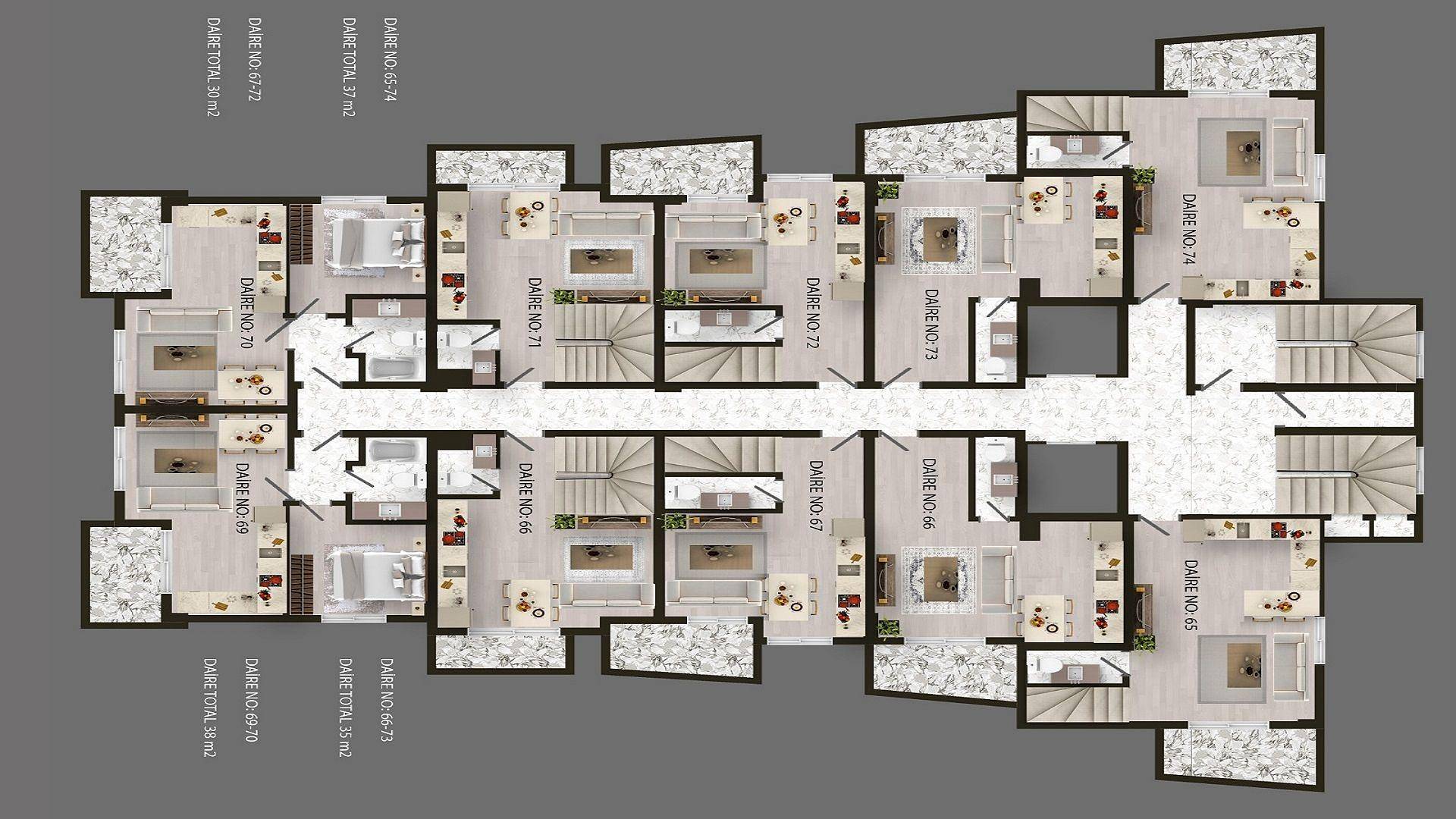 Ce magnifique nouveau complexe, situé au cœur de la campagne d'Avsallar, est niché au milieu des plantations de bananes et entouré de bois et de vergers. Cette région est célèbre pour ses fruits et légumes, et vivre ici vous donne un accès direct à de nombreux agriculteurs et producteurs locaux. Le projet consiste en un bloc d'appartements de neuf étages avec une gamme d'options d'une et deux chambres. Il y a des duplex au premier et au dernier étage disponibles. L'architecture frappante gris anthracite et blanc est magnifique et se trouve dans un bel espace partagé. Il y a une grande piscine entourée de terrasses, idéale pour bronzer et des zones pour les activités sportives, et une aire de jeux pour enfants. Ce complexe est parfait pour vivre une vie détendue et confortable sous le chaud soleil méditerranéen.