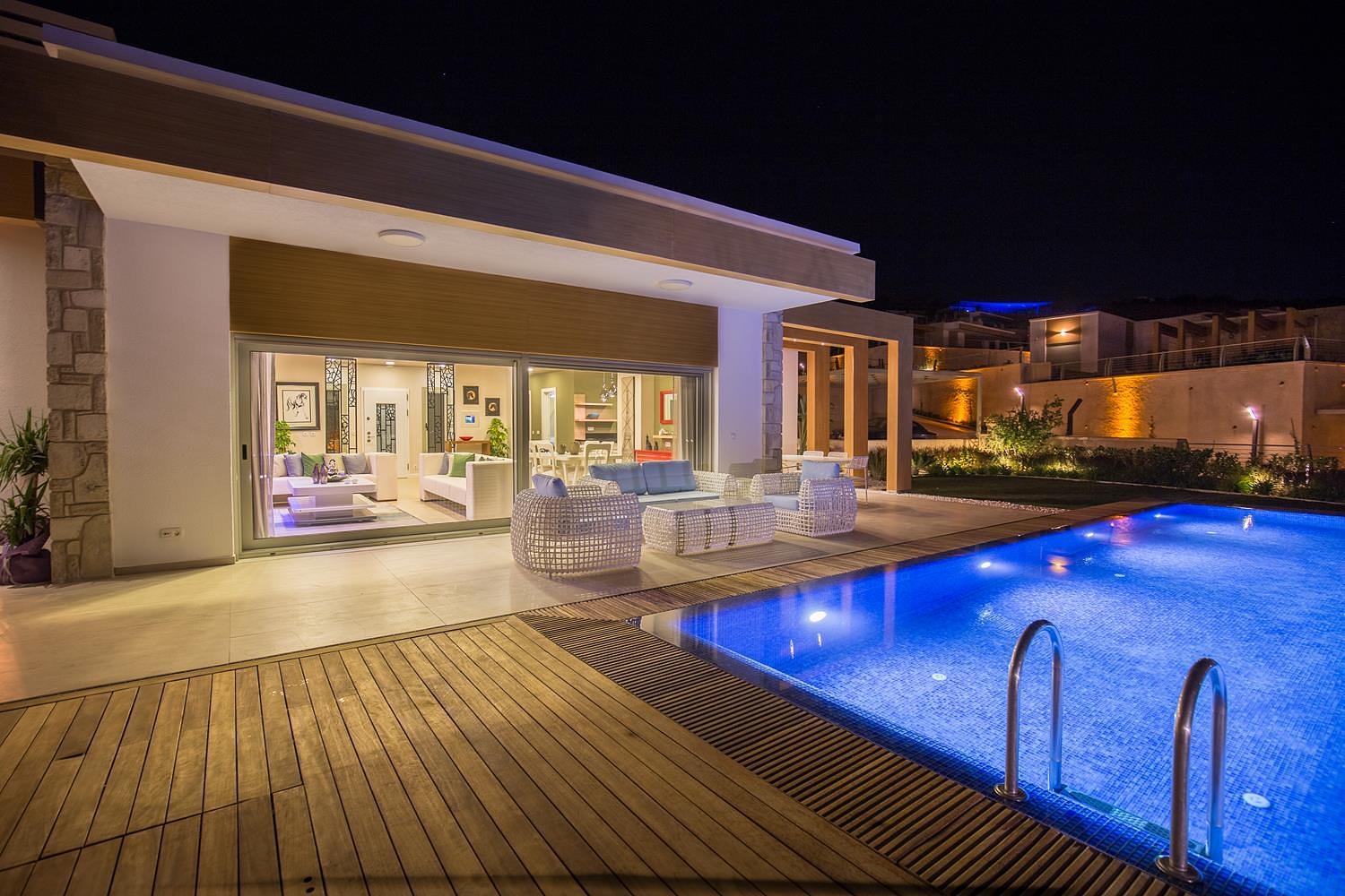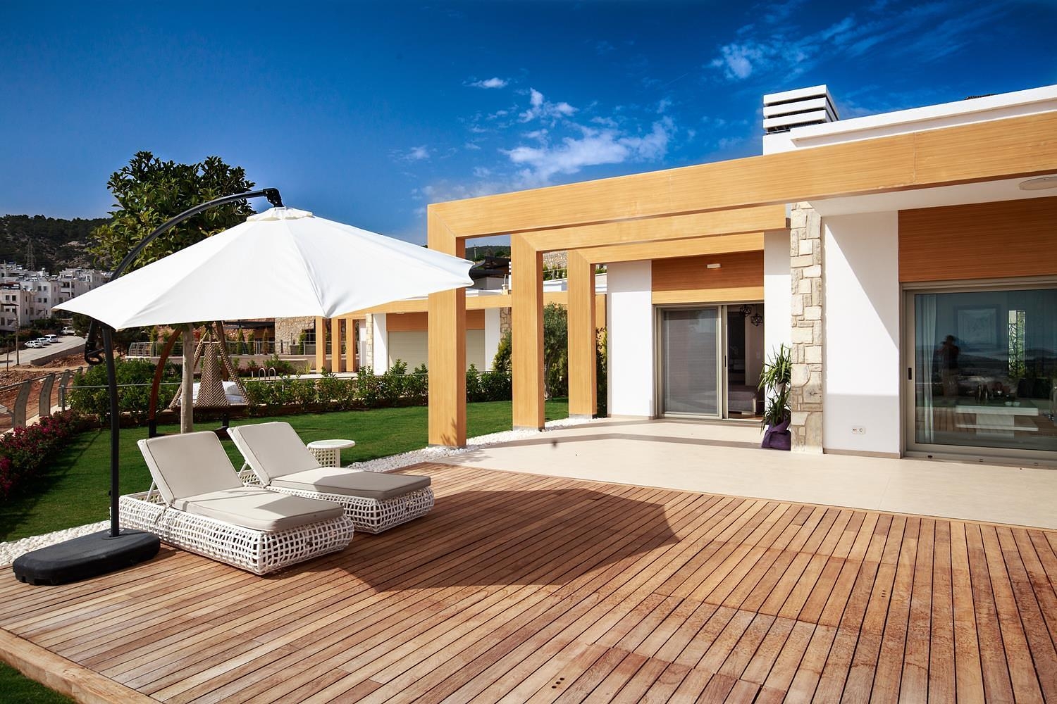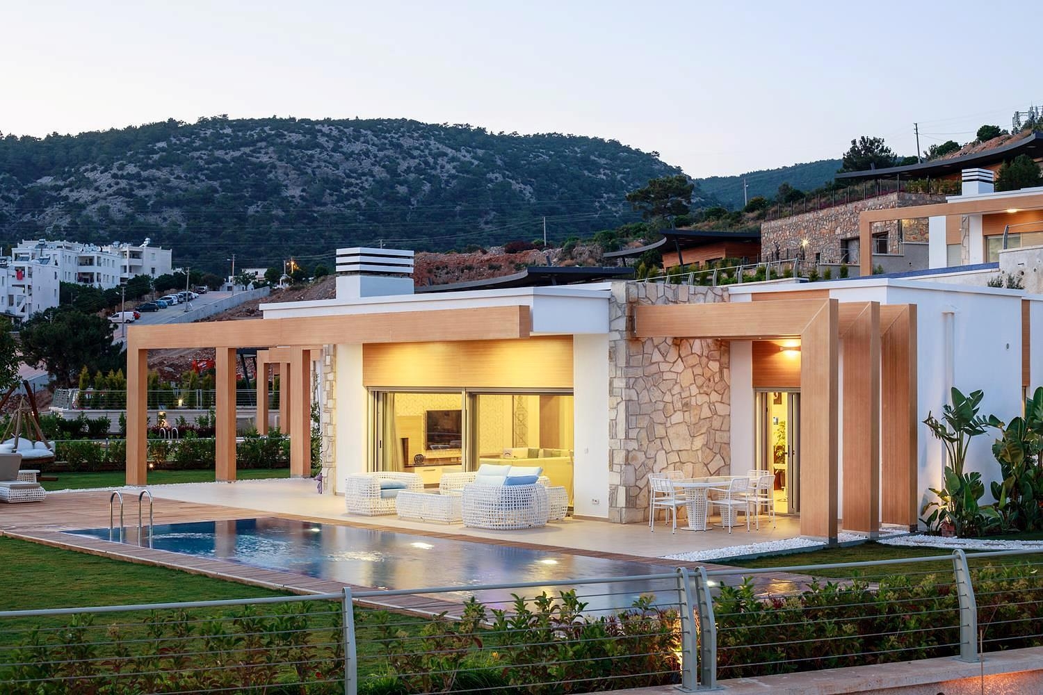 Le complexe comprend 18 villas au total, construites sur un terrain de 18.000 m2. Chaque villa occupe 735 m2 de terrain et la surface habitable a 156 m2. Il ya aussi une grande terrasse, piscine privée et beau jardin paysager.