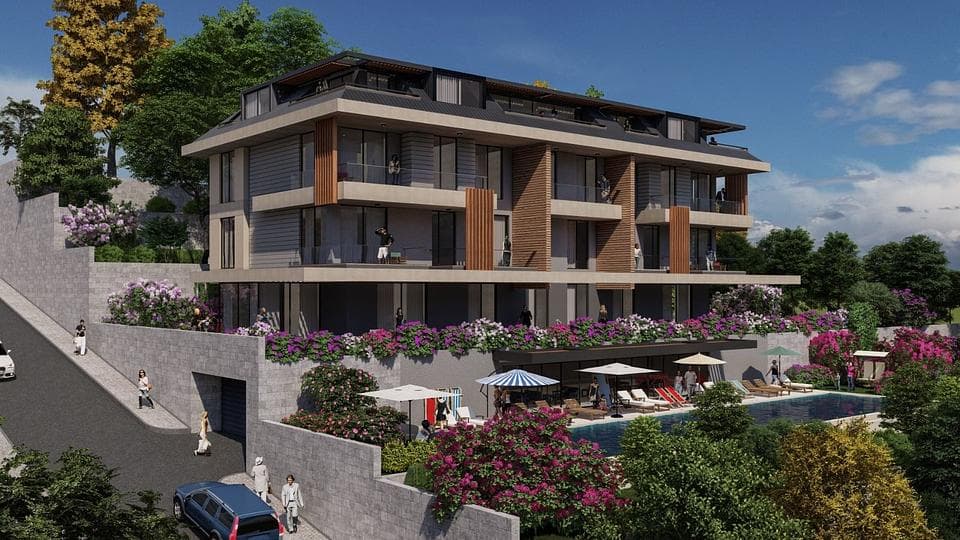 अलान्या हस्बाचे में बिक्री के लिए पूल और 2, 3, 4 बेडरूम वाले अपार्टमेंट