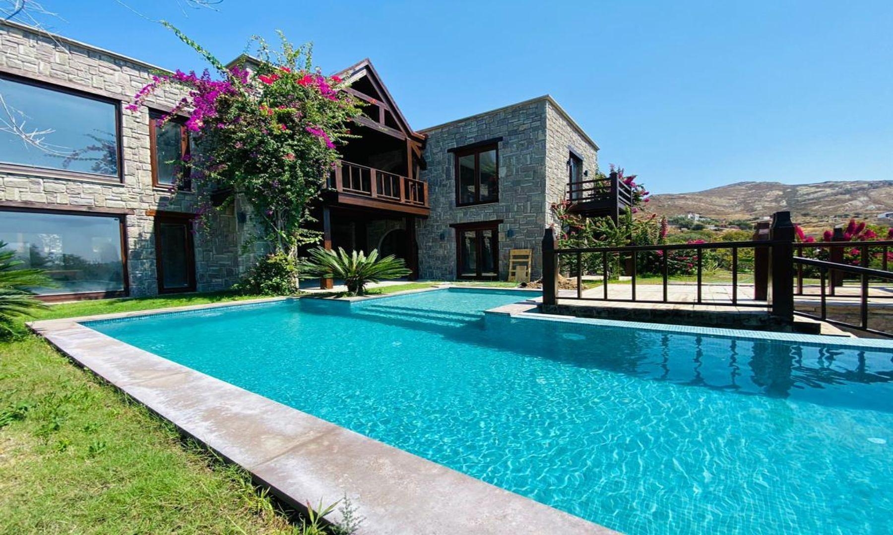 बोद्रुम, मुगला में शानदार नज़ारे के साथ विशाल पत्थर की विला