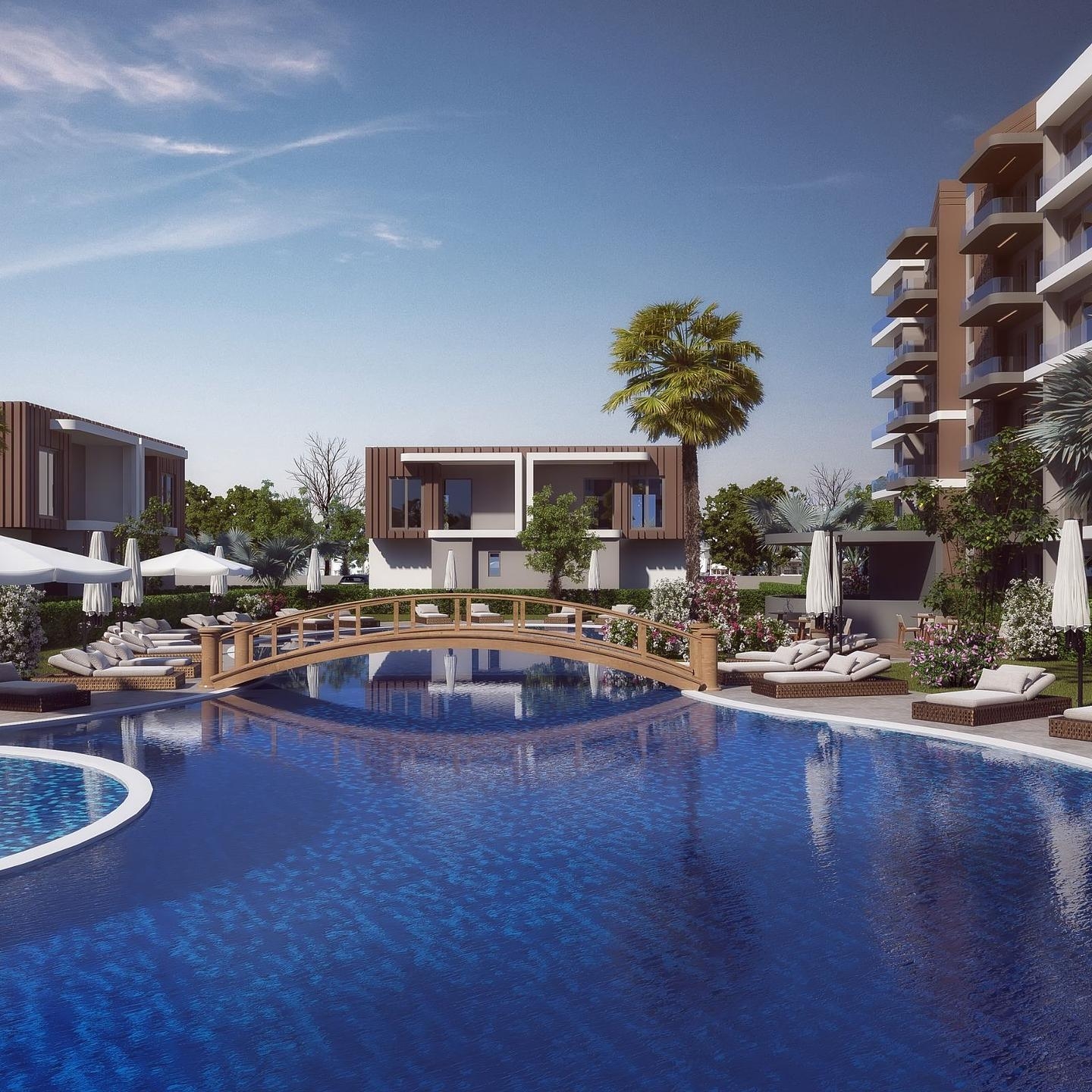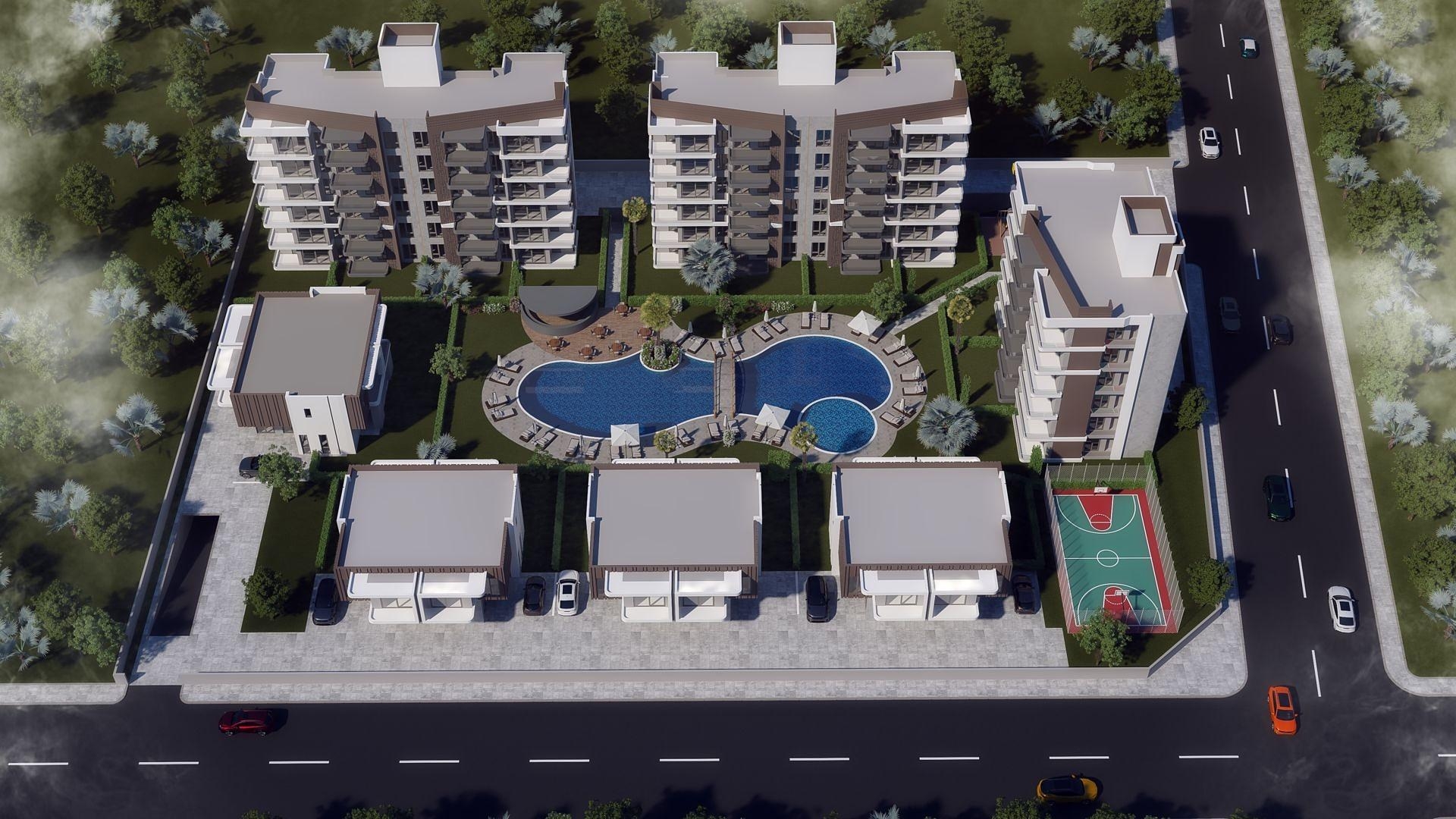 Il complesso, concepito come hotel, copre un'area di 6.662 m2. È composto da 3 blocchi residenziali con 66 unità di tipo appartamento 2+1 e 4 blocchi di ville con 8 ville a 4 camere da letto con vista sulla piscina. Il complesso dispone di numerose comodità sociali, come piscina all'aperto, bar a bordo piscina, garage, parco giochi per bambini, camelia, centro fitness, campo sportivo, sauna, bagno turco, bagno a vapore, reception, lobby, generatore, stazione biciclette, sistema di purificazione dell'acqua, sistema satellitare centrale, sicurezza 24/7 e videosorveglianza.