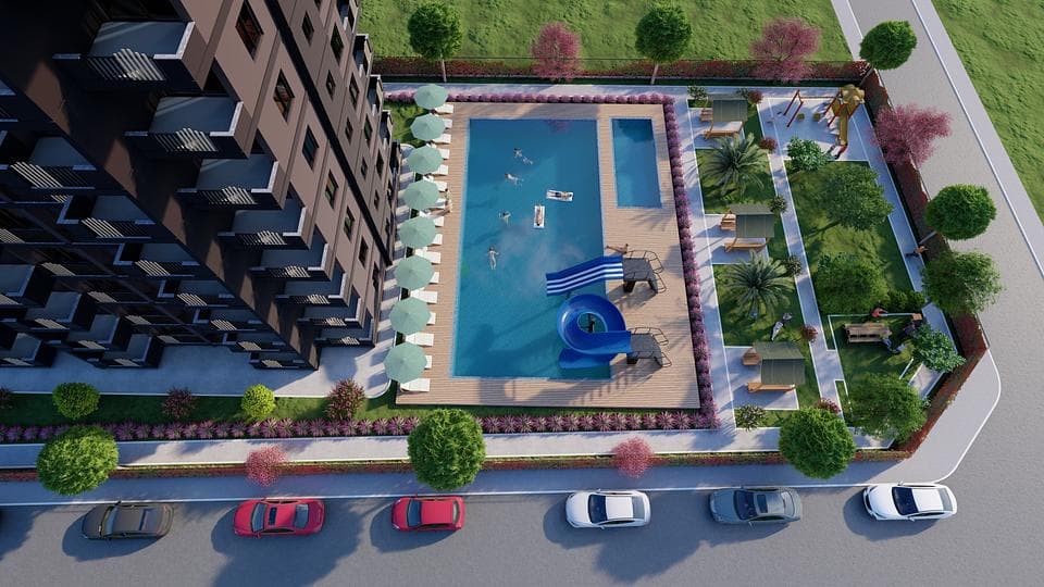 Сатуға: Ердемлі Мерсиндегі Бассейні бар 1 немесе 2 жатын бөлмелері бар пәтерлер