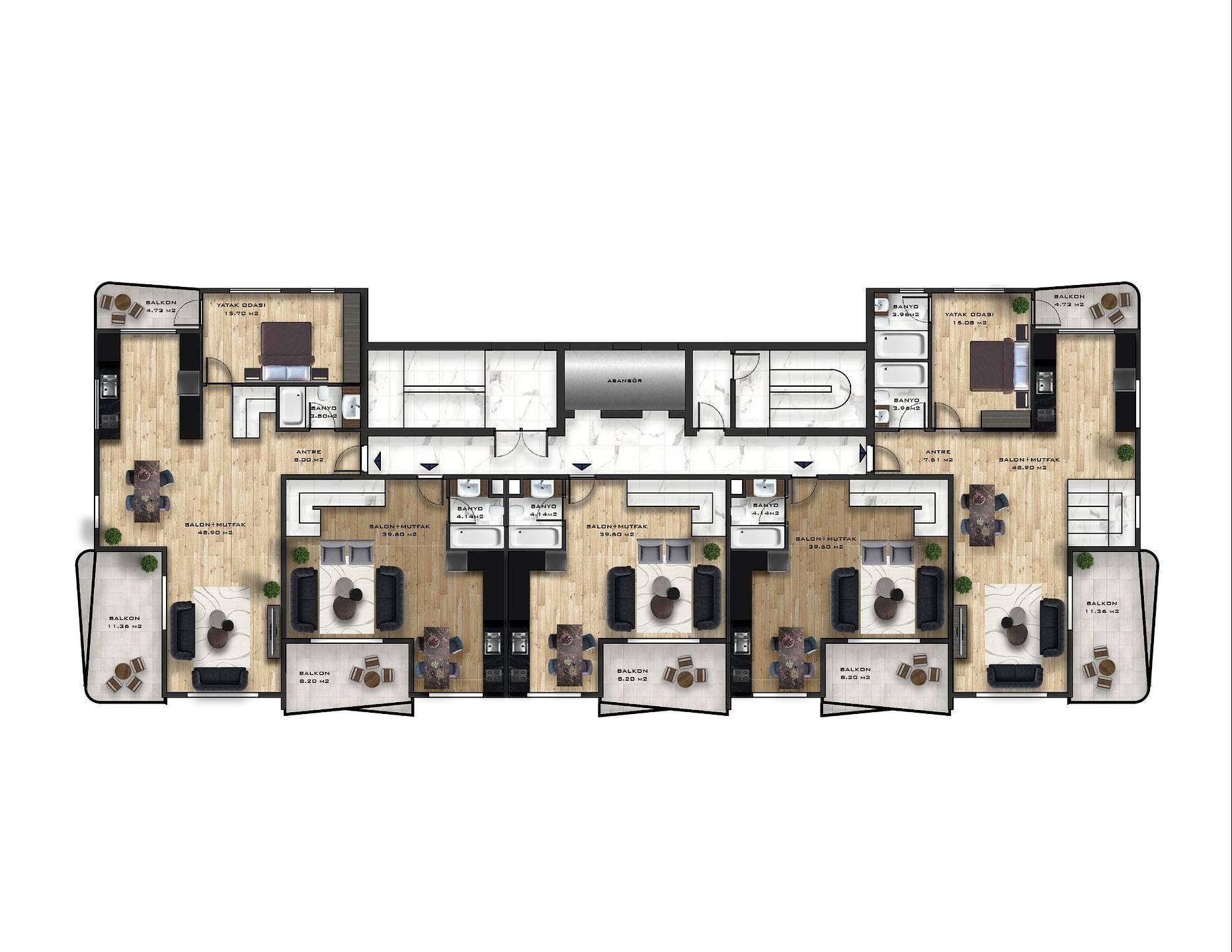 Бұл керемет кешенде сәнді әрі әдемі пәтер шешімдерінің кең ауқымы бар, ол 1+1 кішкентайдан басталып, 4+1 кеңітілген дуплекстің әрлеуге дейін жетеді. Мұнда әркімнің талғамына және бюджетіне сәйкес келетін нәрсе бар. Пәтерлердің өздері жоғары құрылыс стандарттарына сай аяқталады, ашық жоспарлы өмір сүру кеңістіктеріне ие болады. Асүйлер талапшыл аспаздардың қанағаттандыруы үшін кең шкафтармен жабдықталады және заманауи стильде аяқталады. Ванналар люкс болып, қол жетімді кеңістіктің барлығын пайдаланып, функциялы болады. Кешеннің сыртқы көрінісі де әдемі, оны тамашалауға арналған сәнді ерекшеліктердің кең ауқымымен. Бұл ішкі және сыртқы бассейндерді қамтиды, сондай-ақ сезімдеріңізді жасартуға арналған молшылықты СПА аймағын қамтиды. Кешеннің ойын-сауық бөліктері мұқият ұйымдастырылған, бұл оған қонақүйлік вуйб пен әсемдік береді.