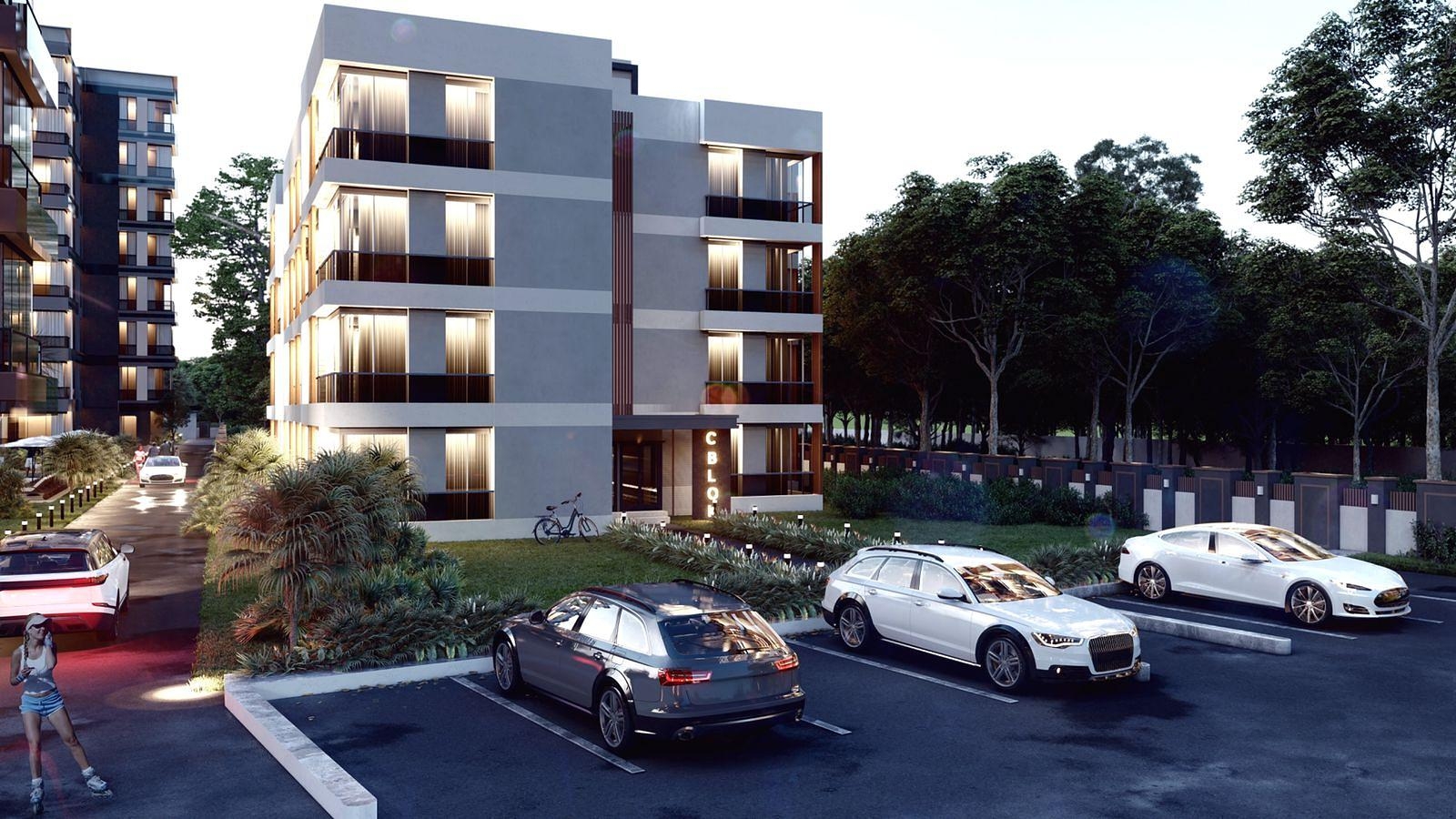 Dit opwindende project heeft een indrukwekkende oppervlakte van 1537 ㎡, met een blok met 24 appartementen verdeeld over vijf verdiepingen. Er komen een- en tweekamerappartementen. De gevel is strak en modern, met een minimalistische uitstraling.