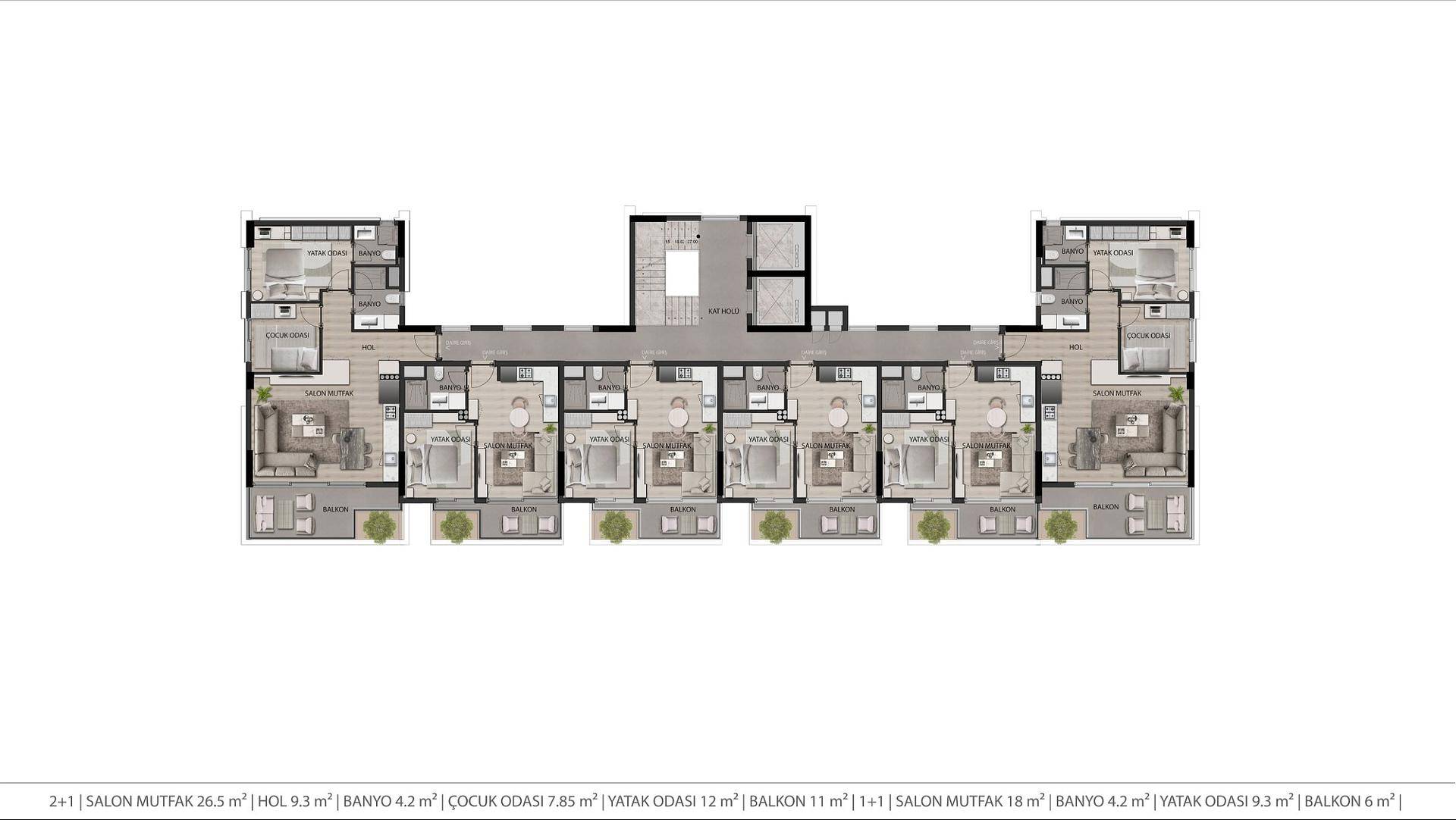 Utformingen av dette prosjektet er svært moderne og består av en fem-etasjes eiendom som tilbyr ett- og to-roms leiligheter. Spesielt egnet for enkeltpersoner eller par, den ene soverommet har ett bad og en balkong. Mer egnet for de med små familier, de to soverommene har to bad, hvorav ett med eget bad, og en balkong. Alle leilighetene har gulvvarme. Det private hageområdet gir et avslappende uterom for beboere når de ikke bruker de andre fasilitetene, som inkluderer et basseng og et velutstyrt treningsstudio. For interesserte kan oppholdstillatelse fås ved kjøp.