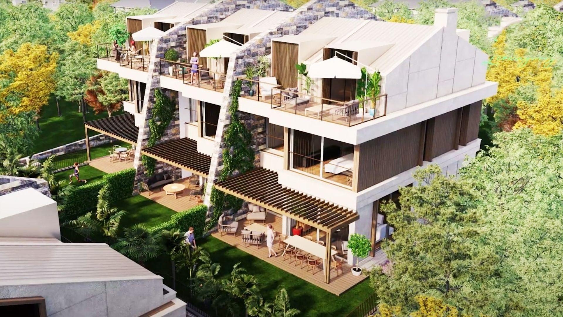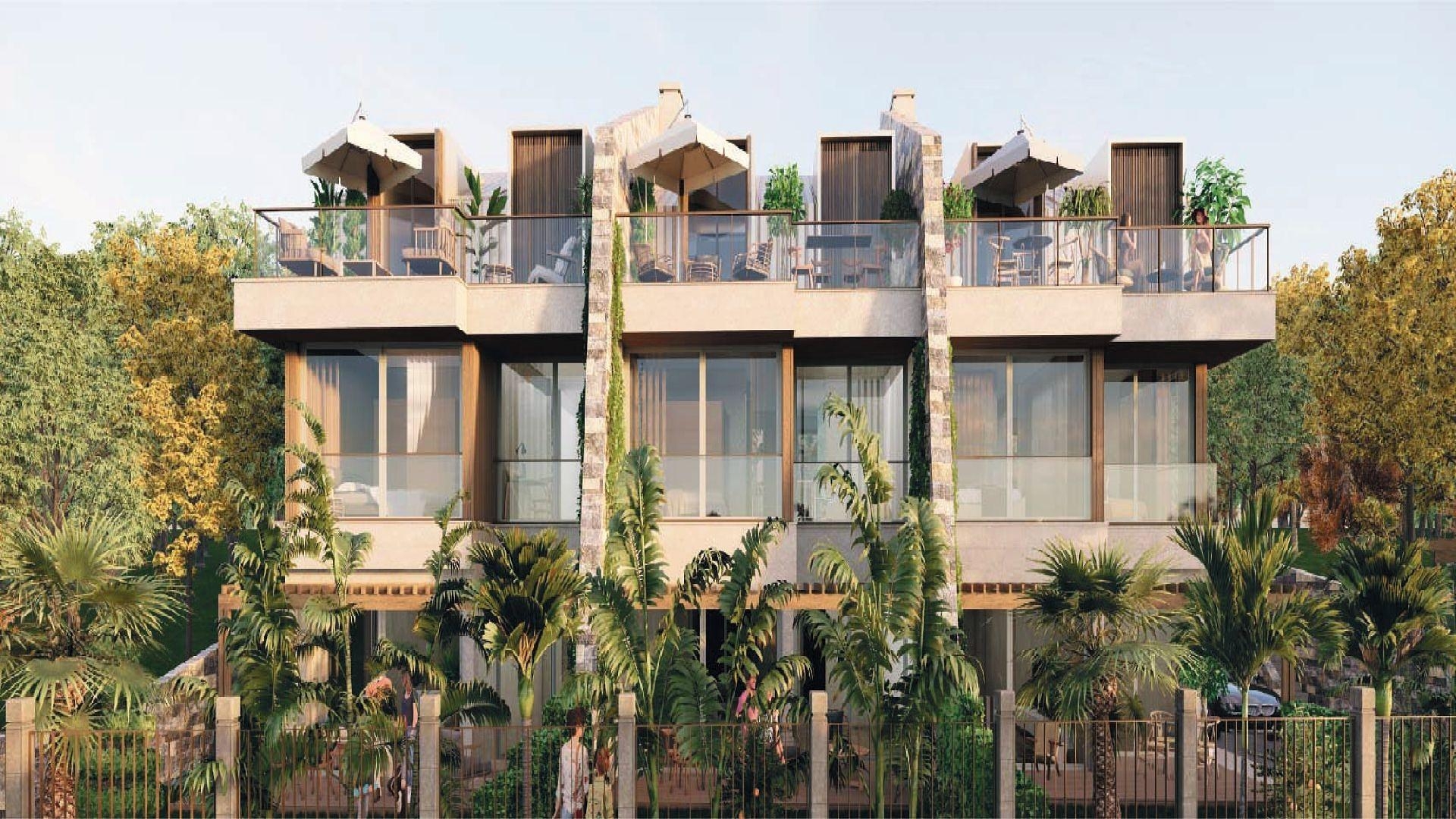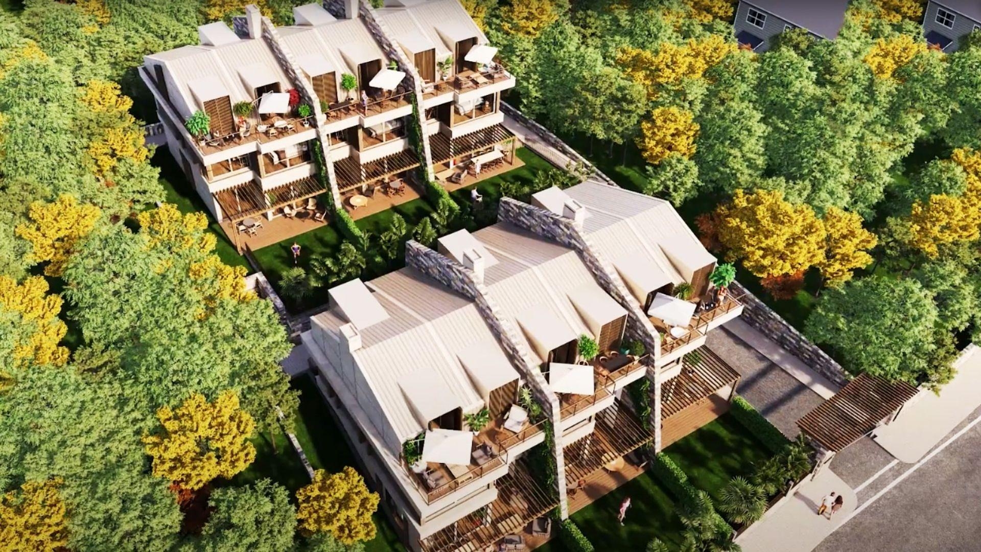 Dette eiendomskomplekset består av to bygninger som er designet for å gli inn i landskapet og likevel dra full nytte av det omkringliggende landskapet. Når de ikke slapper av i sin private hage, gir de store vinduene og glassbalkongene beboerne følelsen av å være utendørs. Leilighetene er seks soverom med fire bad og har tre etasjer. Alle er utstyrt med smarthusteknologi, som inkluderer kontroll av gulvvarmen for optimal komfort. Fasilitetene inkluderer sikkerhet og parkering.