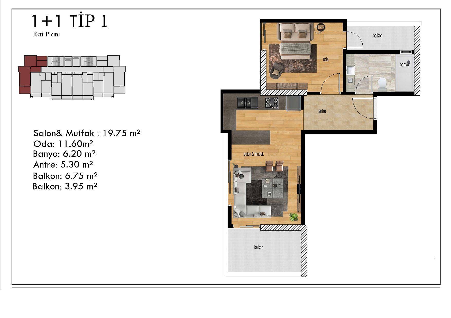 Mezitli er en kystby ved Middelhavet. Det er et distrikt i Mersin, hvis sentrum er 100 meter unna. Det er et populært turistmål, med besøkende som nyter de fine sandstrendene og utforsker historiske steder som ruinene ved Soli-Pompeiopolis. Eiendommen har en praktisk beliggenhet ved Gazi Mustafa Kemal Boulevard, som utgjør en del av motorveien D400 og er hovedveien som går gjennom området. I nærheten av eiendommen er det rikelig med shoppingmuligheter. Beboere kan nyte besøk til Eyup Kahraman-parken, 210 meter unna, eller Bakanlik Caddesi-moskeen, 850 meter unna.