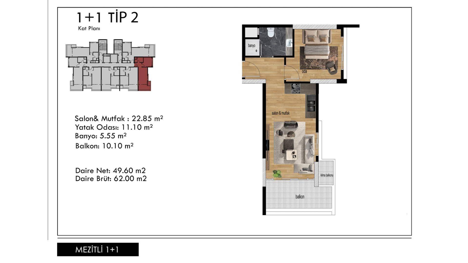 Mezitli er et distrikt i Mersin på sørkysten av Tyrkia ved Middelhavet. Området har vakre sandstrender, noe som gjør det populært blant turister, og eiendommen ligger 1,1 km fra stranden. Det er også Mersin Yuzuncu Yil naturpark som tilbyr et skogsområde ved siden av stranden og ligger 1,6 km fra eiendommen. Det er gode shoppingmuligheter i området, men for det beste valget kan beboerne gå til Soli-senteret, 2,2 km unna. Eiendommen ligger 1,3 km fra Toros Universitet og vil være perfekt for en student eller en ansatt.