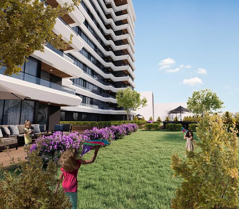 O único bloco deste complexo de propriedades tem dezoito andares. O apartamento de dois quartos tem um banheiro e uma varanda, enquanto o de três quartos tem dois banheiros e uma varanda. O apartamento de quatro quartos é um duplex e tem três banheiros e duas varandas. Todas as varandas são grandes e oferecem belas vistas da cidade e do mar. Há uma cozinha separada, e os interiores elegantes e luxuosos são feitos com materiais da mais alta qualidade. O complexo beneficia de um restaurante e um mercado. Para os interessados, há a oportunidade de cidadania turca e autorização de residência mediante compra.