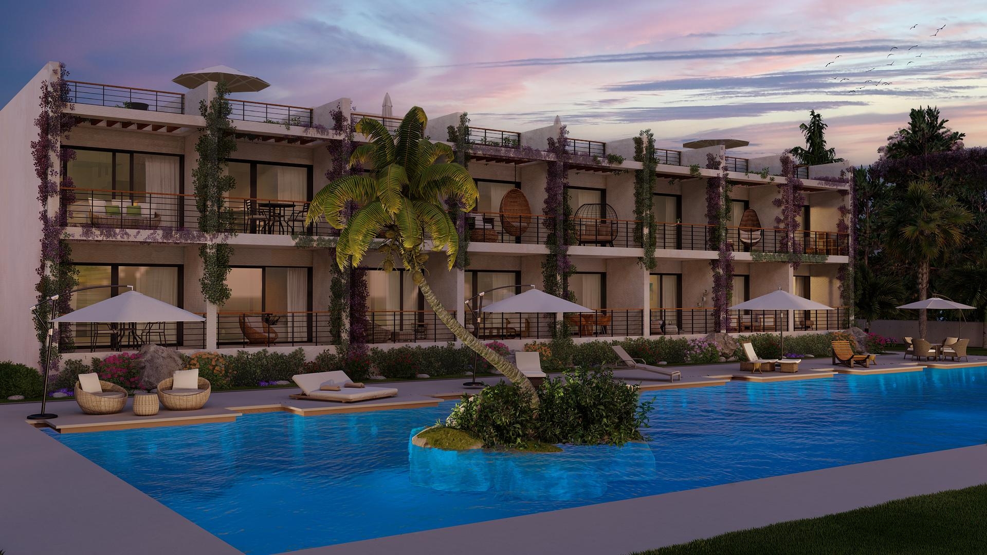 O complexo residencial contém edifícios de 2 andares com 655 unidades em vários layouts: estúdios, apartamentos de 1, 2, 3 quartos, apartamentos loft 2+1, bem como moradias geminadas de 3 quartos.