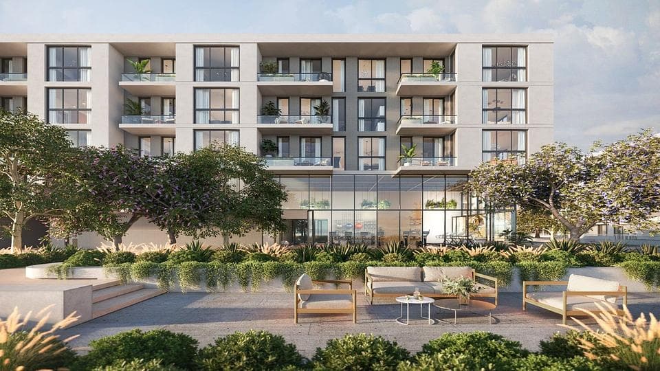 Большой четырехэтажный жилой комплекс предлагает стильные апартаменты с различным количеством спален: от одно- до трехспальных. Одно- и двуспальные апартаменты оборудованы двумя ванными комнатами, а трехспальные – тремя. Во всех апартаментах имеются балконы, с которых открывается вид на обширную территорию ЖК. Придомовые удобства включают большой пейзажный бассейн, беговые и пешеходные дорожки и сад.