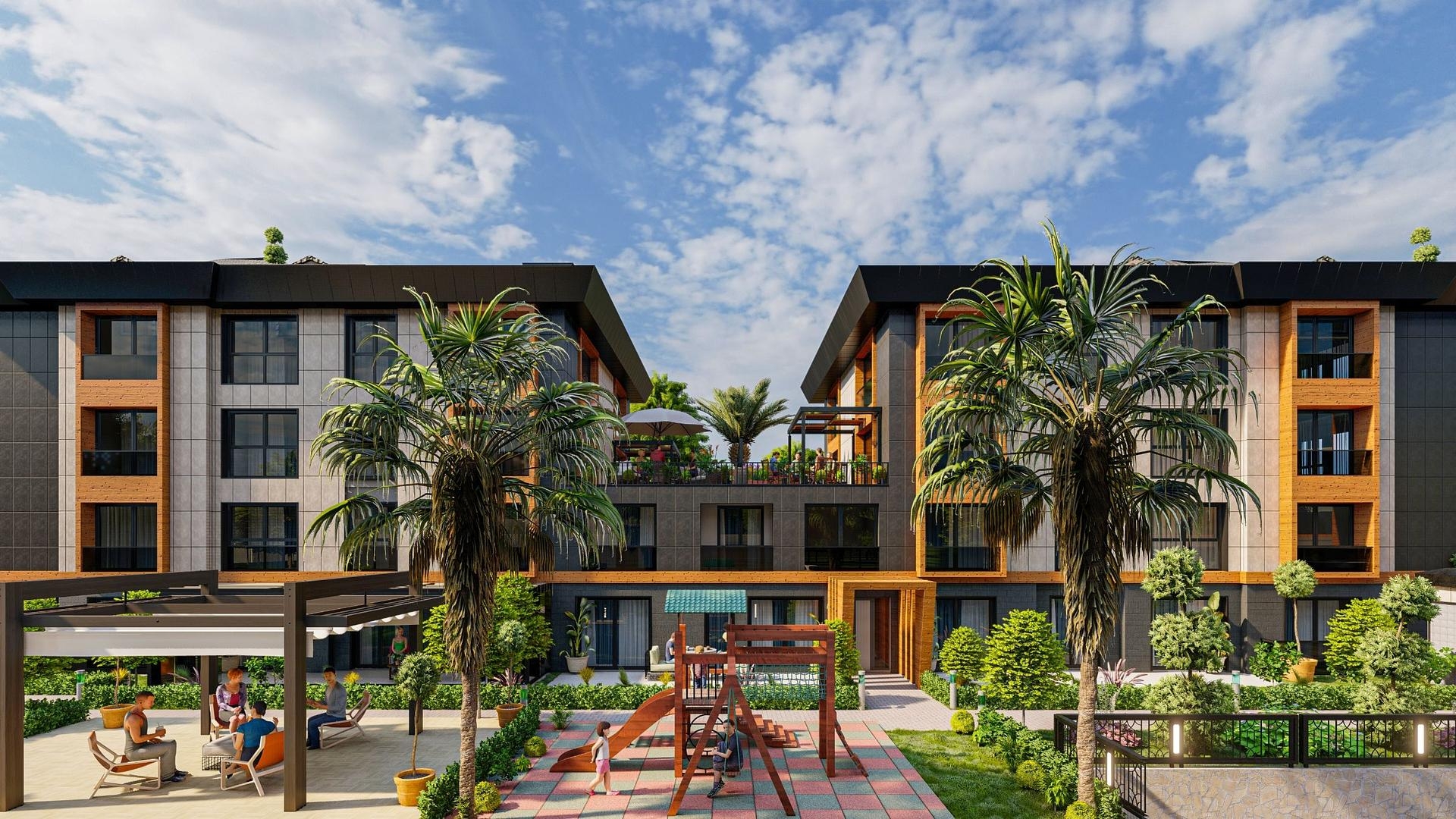 Жилой комплекс построен на общей площади в 1 350 м2 и состоит из двух 5-этажных жилых блоков с 36 апартаментами: двух-, трех- и пятиспальными вариантами. Придомовая территория имеет 2 000 м2 озелененного пространства со множеством удобств, таких как фитнес-центр, сауна, открытый бассейн, детская площадка, турецкая баня, круглосуточная охрана и видеонаблюдение.