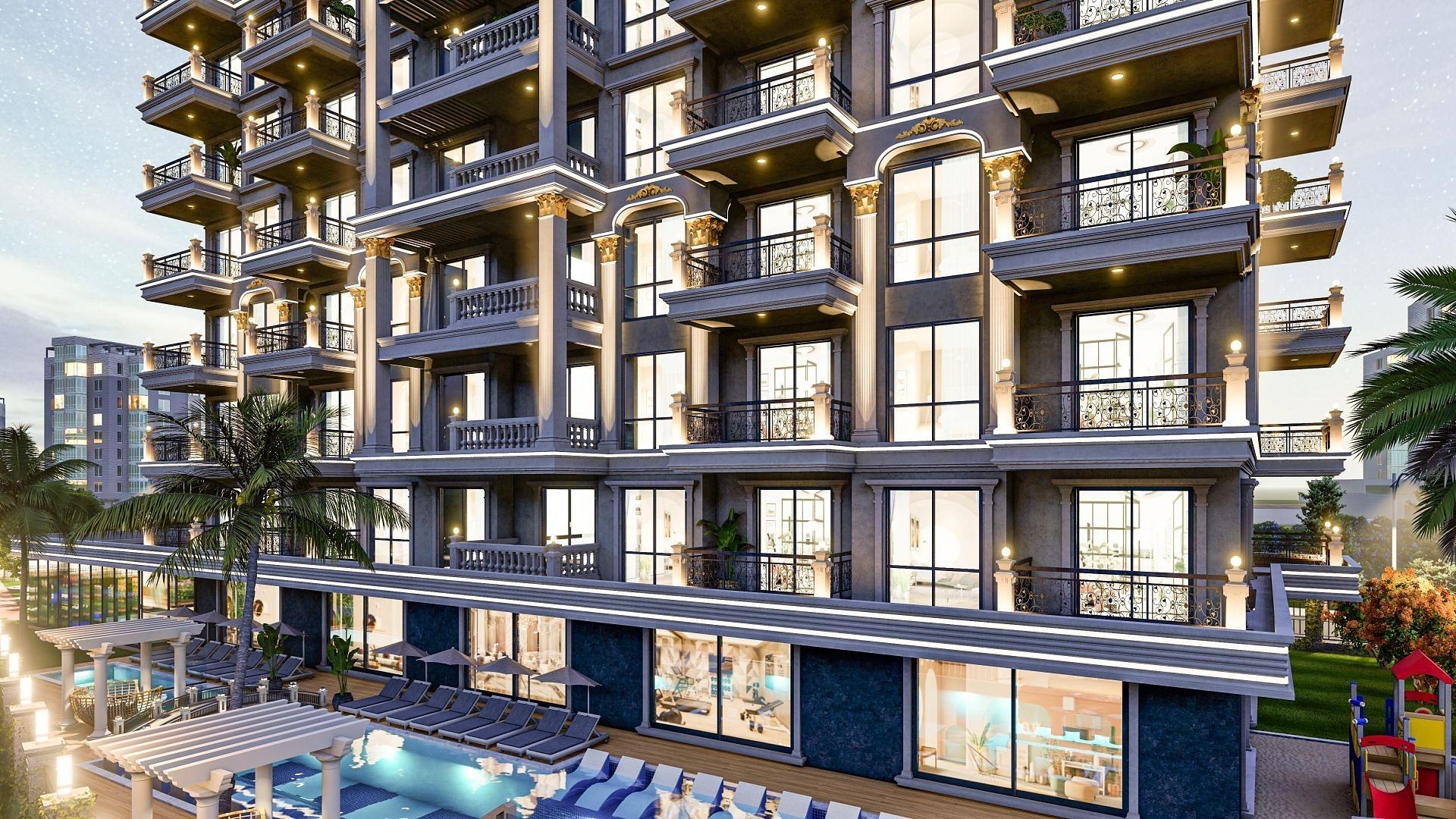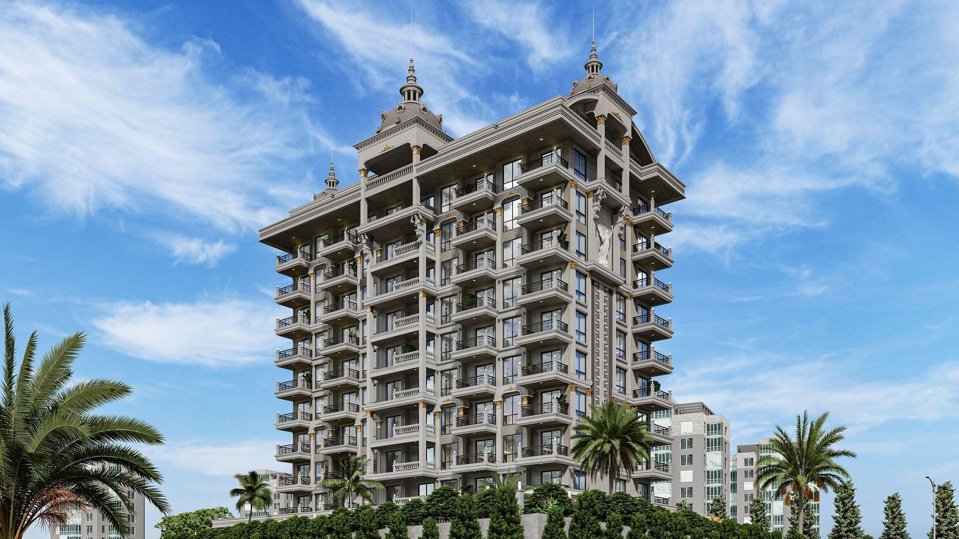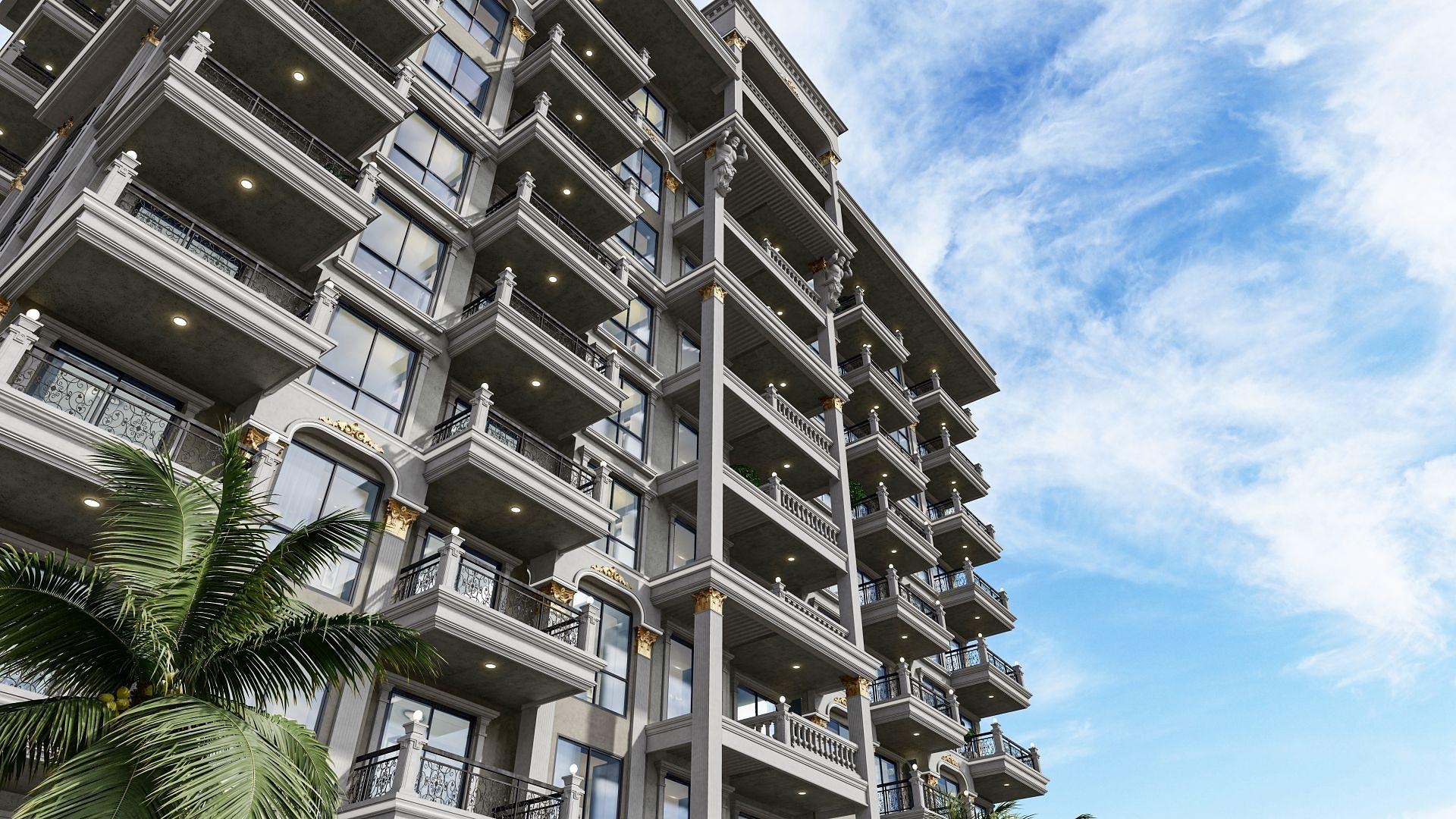 Жилой комплекс напоминает настоящий дворец. Восьмиэтажное строение является воплощением роскоши, а апартаменты здесь подойдут семьям. В продаже апартаменты с одной и двумя спальнями.