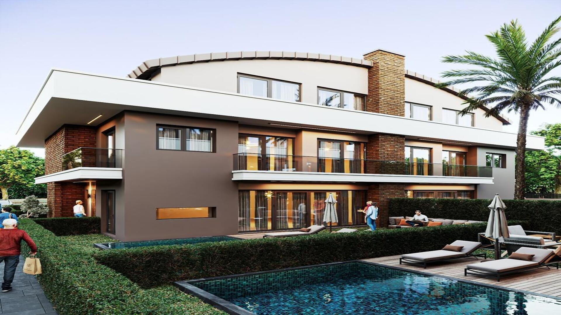 В каждой вилле 5 спален, 3 санузла, гостиная, зимний сад, кладовка, гардеробная, частный сад, бассейн площадью 25 м2 и крытая парковка.