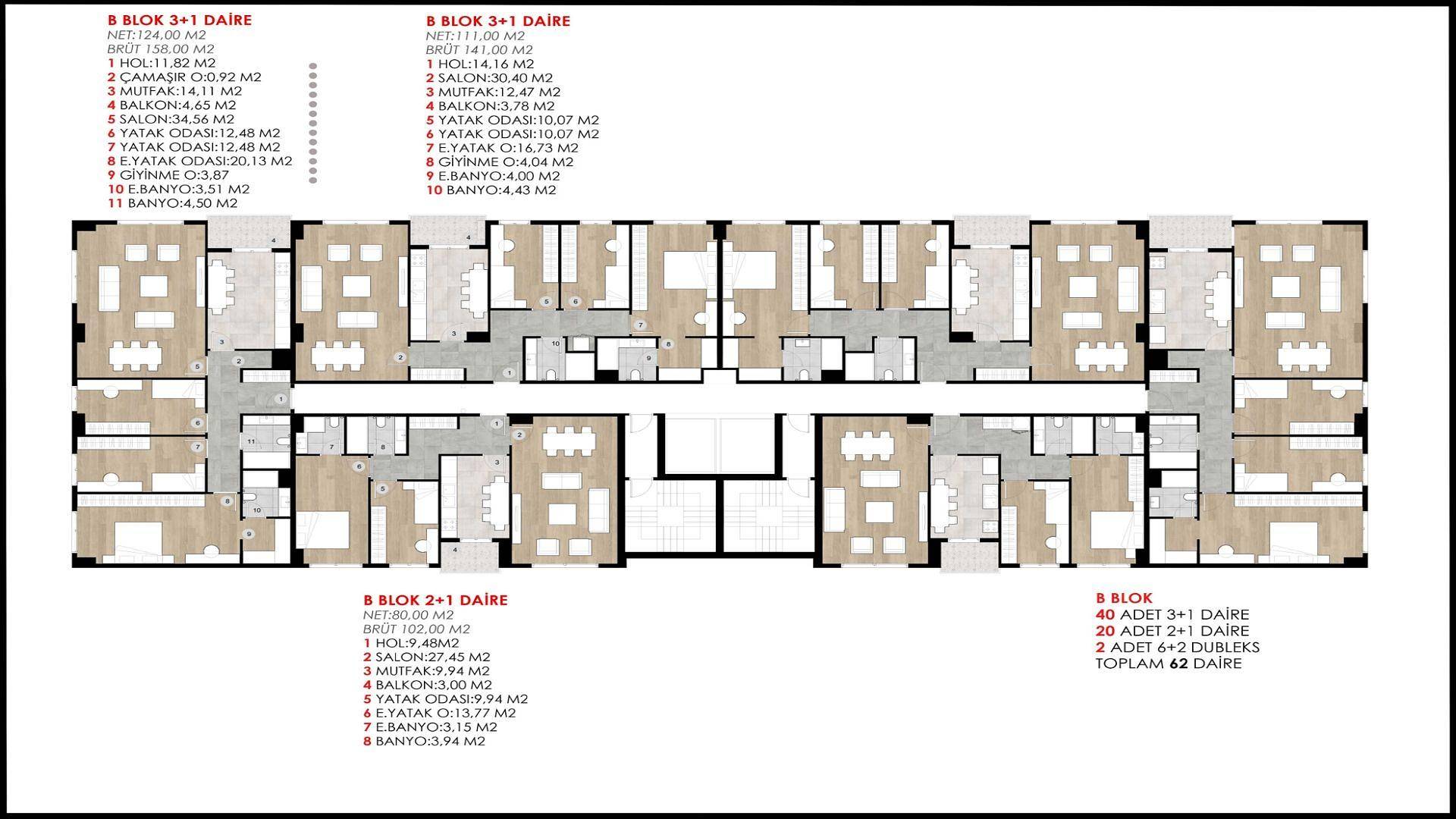 Projekt pozostáva z troch budov spolu 146 jednotiek na pozemku o výmere 35.100 m2. Blok A má 10 podlaží domácich kancelárií v konfiguráciách 1+1 a 2+1, Blok B má 10 podlaží bytových jednotiek v dispozíciách 2+1 a 3+1 a Blok C má 6 podlaží iba kancelárií. Hotel ponúka širokú škálu vybavenia vrátane 24-hodinovej strážnej služby, posilňovne, sauny, krytého bazéna, basketbalového ihriska, biliardovej miestnosti, kaviarne, hudobnej miestnosti, recepcie a tradičných tureckých kúpeľov.