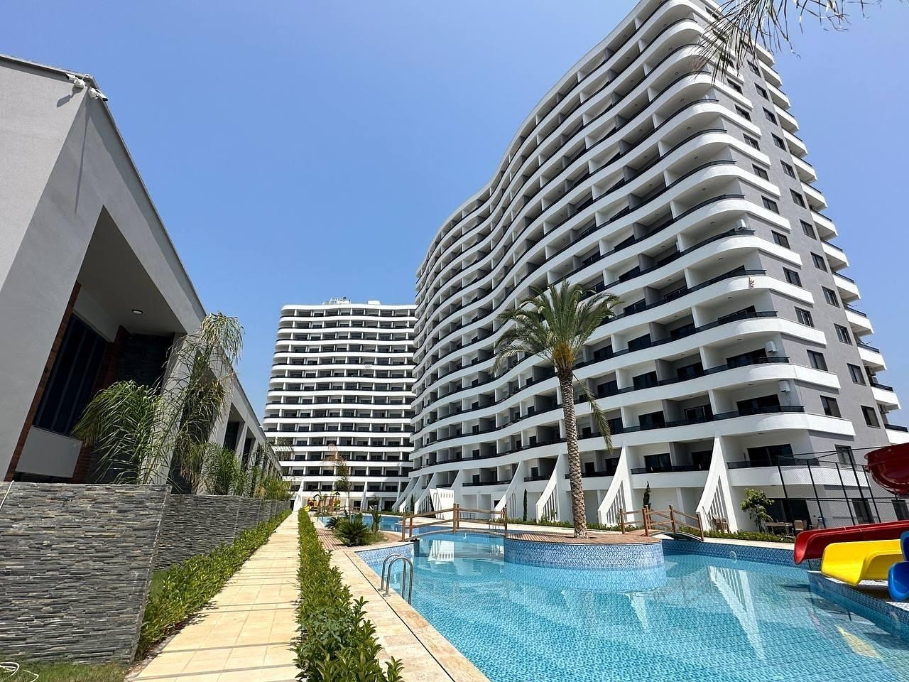 Mirësevini në Erdemli, Mersin, Turqi! I ndodhur përgjatë vijës bregdetare të Mesdheut që të lë pa frymë, Erdemli krenohet me një përzierje harmonike të shkëlqimit natyror dhe komoditeteve bashkëkohore. I njohur për pamjet magjepsëse, komunitetet ftuese dhe atmosferën e gjallë, ky distrikt mahnit banorët dhe vizitorët me stilin e tij të jetesës së qetë, por dinamike. Zhyt veten në trashëgiminë e pasur, kuzhinën e këndshme dhe mikpritjen e ngrohtë të Erdemli, ku çdo ditë është e mbushur me thelbin e një pushimi të përhershëm. I vendosur vetëm 5 kilometra nga qendra e zhurmshme e qytetit dhe vetëm 450 metra nga bregu më i afërt, ky zhvillim i ardhshëm premton akses dhe komoditet të pashembullt. Me një vendndodhje të mirë, ai qëndron vetëm 95 kilometra nga Aeroporti i Adanas, me eksitimin e shtuar të një aeroporti të ri që do të zbukurojë horizontin e Mersinit brenda muajve të ardhshëm. Për më tepër, shijoni lehtësinë e aksesit në tregun më të afërt, vetëm 150 metra larg. Ky apartament me një dhomë gjumi, i vendosur brenda një kompleksi simpatik në Mersin, ofron një bollëk hapësire dhe rehati. E krijuar në mënyrë të përsosur me materiale të cilësisë së lartë që kullojnë luks, kjo rezidencë ofron një përvojë jetese luksoze. Kënaquni me pamjen delikate të detit që shton joshjen e këtij vendbanimi, i vendosur në katin e 4-të të një ndërtese të shquar 13-katëshe. Përjetoni mishërimin e jetesës moderne me këtë mundësi të jashtëzakonshme në Erdemli, Mersin, Turqi. Mos e humbni mundësinë tuaj për të siguruar pjesën tuaj të parajsës mes këtij vendi magjepsës.