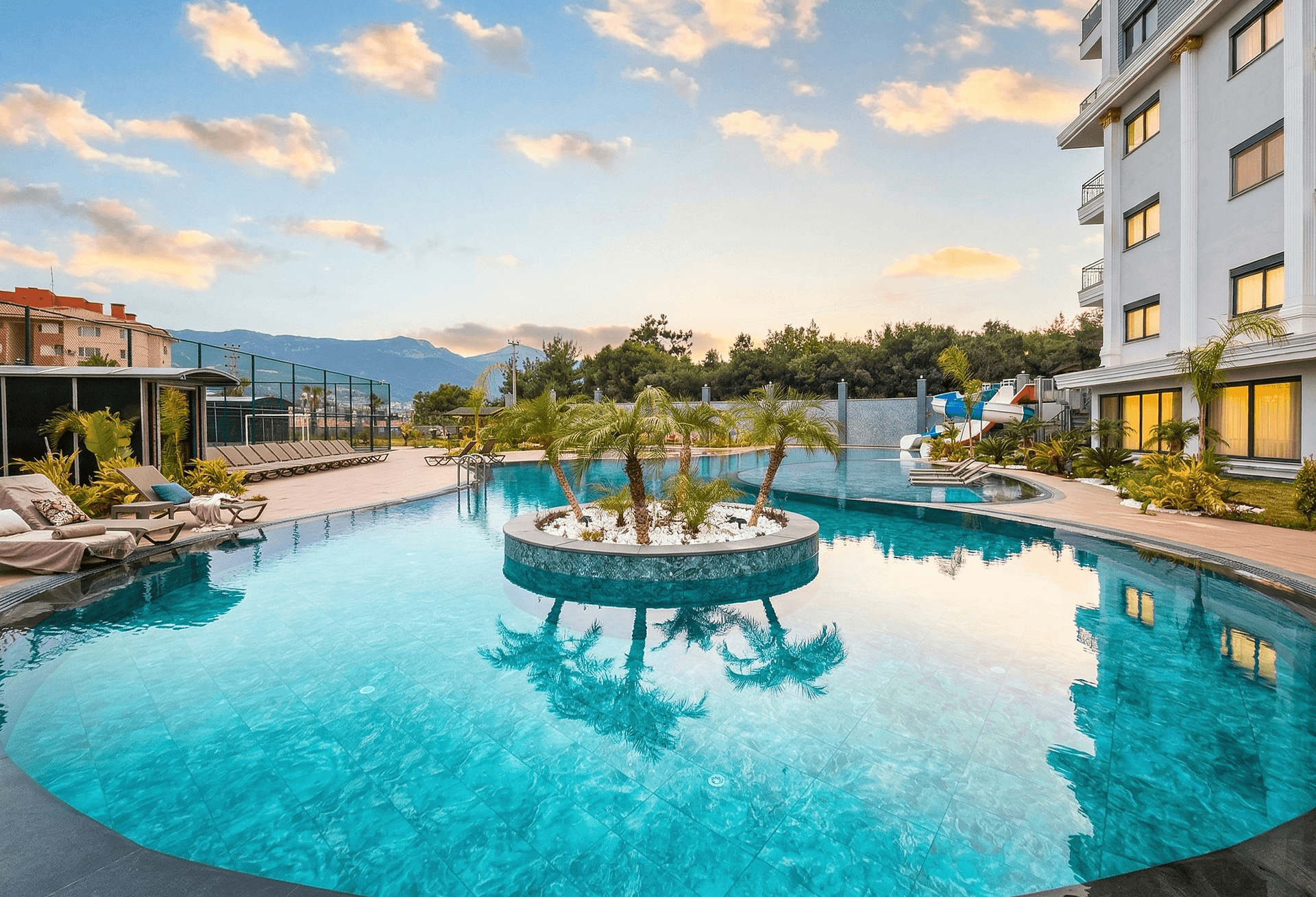 Као модерни 1+1 стан са друштвеним погодностима у Тошмуру, резиденција обично нуди базен, сауне, фитнес центар, 24/7 сигурност и близину апартмана на продају у близини плаже у Тошмур Аланија .