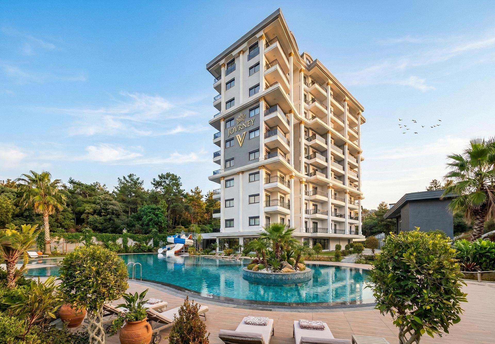 The Live Journey Residence Tosmur Alanya истиче се као нов пројекат стамбеног обиједишта у Тошмуру осмишљен за удобност и луксуз. Ова савремена 1+1 станова у Тошмуру са друштвеним садржајима застане на 55m² пажљиво дизајнираног простора. Станари имају приступ врхунским погодностима, укључујући базен, фитнес центар и уређене баште. Ако тражите стан готов за уселење у аланијском округу Тошмур, ова јединица нуди одмах уселење са висококвалитетним довршетком и естетском вредношћу која дефинише луксузну имовину у Аланији на продају.