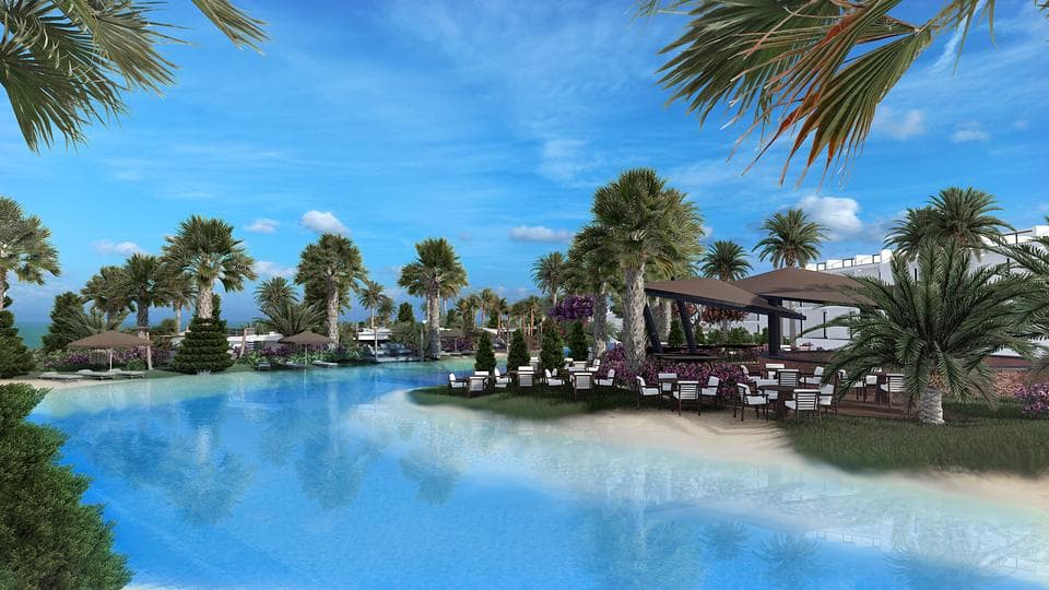 Овај потпуно нови комплекс један је од највећих стамбених ресорта на мору у овом подручју. Пројекат укључује вештачка језера и реке и има приватна острва у средини комплекса. Можете пронаћи скривене углове за сунчање и опуштање међу зеленилом, укључујући и на вештачким острвима расутим по имању. Водене површине и лепи водопади пружају мирно место за медитацију и размишљање. Овај јединствени пројекат постављен је да буде оаза која одражава меко обликовање пејзажа које обухвата овај пројекат. На терену се налазе садржаји слични онима у хотелу са 5 звездица са затвореним грејаним базеном, СПА центром, рестораном, баром, теретаном, кошаркашким и тениским теренима. Пространи апартмани су добро дизајнирани са; уграђеним кухињама и гардеробама у спаваћим собама, двоструким прозорима, и системом загревања воде. Могућност куповине некретнине у овом комплексу је јединствена прилика која ће променити ваш начин живота заувек. Ако можете замислити буђење на само неколико метара од плаже, са звуком таласа и топлим песком под ногама, онда је ова идилична локација савршена за вас. Контактирајте нас данас да бисте сазнали више информација, и ми ћемо вас водити кроз процес куповине куће у северном Кипру.