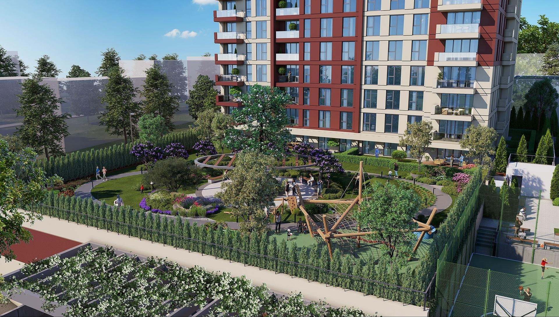 Смештен у динамичној области Махмутбеи Багцıлар, Истанбул, овај истакнути стамбени пројекат нуди хармоничан спој модерног живота и погодности. Суседство је познато по својим врхунским стамбеним комплексима и близини основних садржаја, што га чини идеалним избором за породице и професионалце.